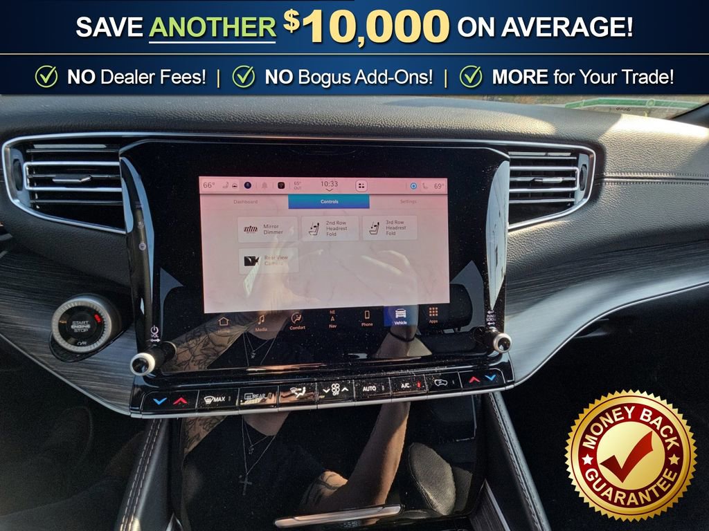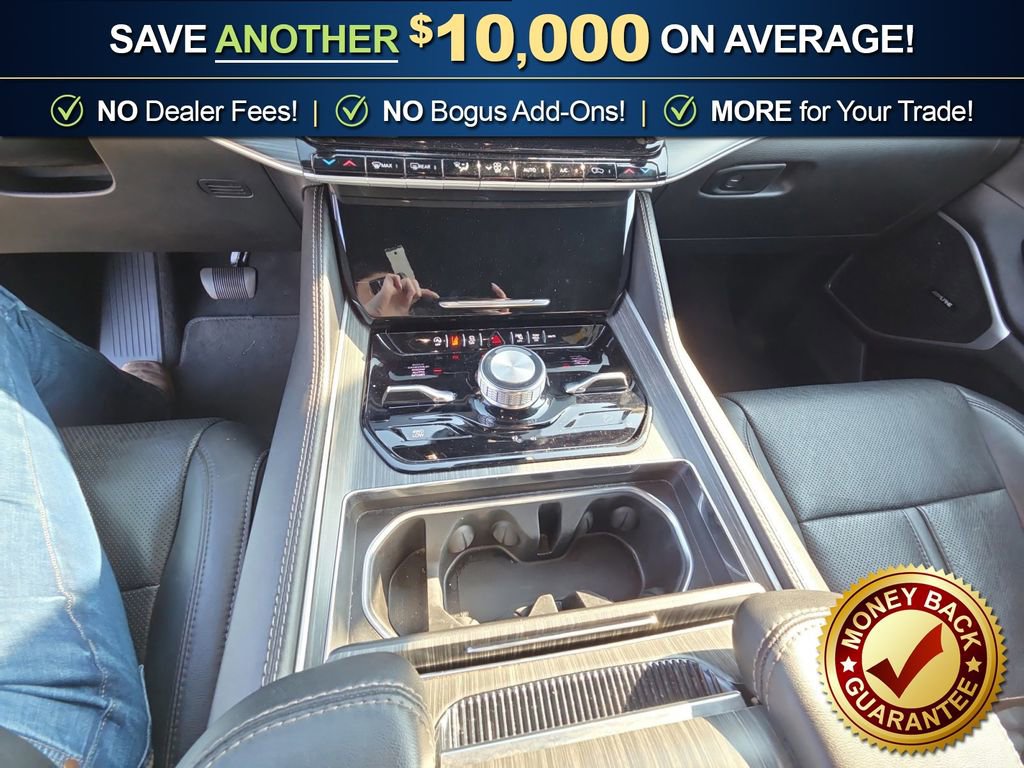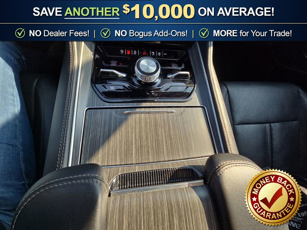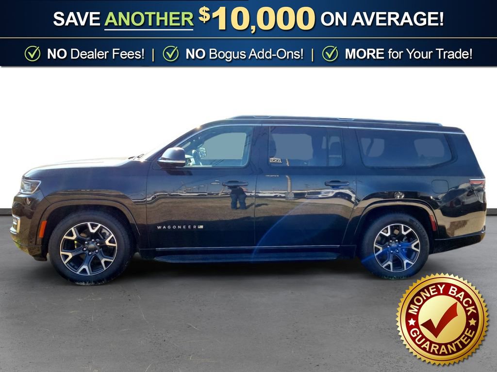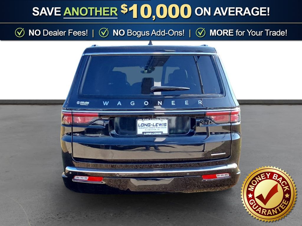 10 Speakers, 3.55 Rear Axle Ratio, 3rd row seats: bench, 4-Wheel Disc Brakes, 8-Passenger Seating, ABS brakes, Adjustable pedals, Air Conditioning, Alloy wheels, AM/FM radio: SiriusXM with 360L, Anti-whiplash front head restraints, Apple CarPlay/Android Auto, Audio memory, Auto High-beam Headlights, Auto-dimming door mirrors, Auto-dimming Rear-View mirror, Auto-leveling suspension, Automatic temperature control, Brake assist, Bumpers: body-color, Compass, Delay-off headlights, Driver door bin, Driver vanity mirror, Driver's Seat Mounted Armrest, Dual front impact airbags, Dual front side impact airbags, Electronic Stability Control, Emergency communication system: Wagoneer Connect, Exterior Parking Camera Rear, Four wheel independent suspension, Front anti-roll bar, Front Bucket Seats, Front Center Armrest w/Storage, Front dual zone A/C, Front fog lights, Front reading lights, Full Length Floor Console, Fully automatic headlights, Garage door transmitter, Genuine wood console insert, Genuine wood dashboard insert, Genuine wood door panel insert, Heads-Up Display, Heated door mirrors, Heated front seats, Heated rear seats, Heated steering wheel, Illuminated entry, Knee airbag, Leather Trimmed Bucket Seats, Low tire pressure warning, Memory seat, Navigation System, Normal Duty Suspension, Occupant sensing airbag, Outside temperature display, Overhead airbag, Overhead console, Panic alarm, Passenger door bin, Passenger seat mounted armrest, Passenger vanity mirror, Pedal memory, Power adjustable front head restraints, Power door mirrors, Power driver seat, Power Liftgate, Power passenger seat, Power steering, Power windows, Preferred Equipment Group (DISC), Quadra-Lift Air Suspension, Quick Order Package 25N, Radio data system, Radio: Uconnect 5 Nav w/10.1 Display, Rain sensing wipers, Rear air conditioning, Rear anti-roll bar, Rear reading lights, Rear seat center armrest, Rear window defroster, Rear window wiper, Reclining 3rd row seat, Remote keyless entry, Security system, Semi Active Damping, Speed control, Speed-sensing steering, Speed-Sensitive Wipers, Split folding rear seat, Steering wheel memory, Steering wheel mounted audio controls, Tachometer, Telescoping steering wheel, Tilt steering wheel, Traction control, Trip computer, Turn signal indicator mirrors, Variably intermittent wipers, Ventilated front seats, Voltmeter, Wheels: 20 x 9.0 Aluminum (DISC).