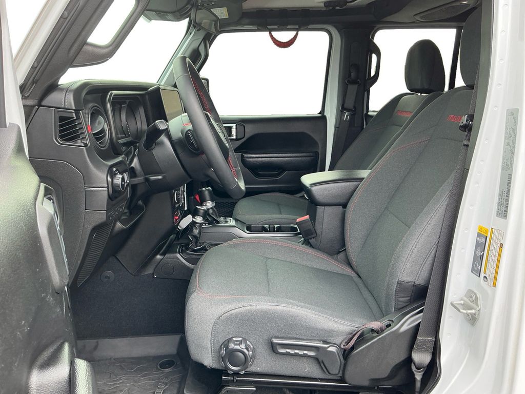 2024 Jeep Wrangler Rubicon Bright White Clearcoat Rubicon 4WD 8-Speed Automatic 3.6L V6 24V VVT 12.3" Touchscreen Display, 4-Wheel Disc Brakes, 4.10 Rear Axle Ratio, 8 Speakers, 97 MPH Vehicle Max Speed Calibration, ABS brakes, Air Conditioning, Alloy wheels, AM/FM radio: SiriusXM, Apple CarPlay, Apple CarPlay/Android Auto, Automatic temperature control, Aux Battery, Black 3-Piece Hard Top, Brake assist, Cloth Low-Back Bucket Seats, Compass, Connectivity - US/Canada, Delay-off headlights, Disassociated Touchscreen Display, Driver door bin, Driver vanity mirror, Dual front impact airbags, Dual front side impact airbags, Electronic Stability Control, Emergency communication system: Jeep Connect, Freedom Panel Storage Bag, Front anti-roll bar, Front Bucket Seats, Front Center Armrest w/Storage, Front dual zone A/C, Front fog lights, Front reading lights, Fully automatic headlights, Google Android Auto, Heated door mirrors, Illuminated entry, Integrated Center Stack Radio, Integrated roll-over protection, Integrated Voice Command w/Bluetooth, Low tire pressure warning, MOPAR All-Weather Floor Mats, MOPAR Hardtop Headliner, No Soft Top, Non-Lock Fuel Cap w/o Discriminator, Occupant sensing airbag, Outside temperature display, Overhead airbag, Panic alarm, ParkView Rear Back-Up Camera, Passenger door bin, Passenger vanity mirror, Performance Suspension, Power door mirrors, Power steering, Power windows, Quick Order Package 24R Rubicon, Radio data system, Radio: Uconnect 5 w/12.3" Display, Rear anti-roll bar, Rear reading lights, Rear Window Defroster, Rear Window Wiper/Washer, Remote keyless entry, Security system, Speed control, Split folding rear seat, Steering wheel mounted audio controls, Stop-Start Dual Battery System, Tachometer, Telescoping steering wheel, Tilt steering wheel, Traction control, Trip computer, Variably intermittent wipers, Voltmeter, Wheels: 17" x 7.5" Machined/Painted Black.