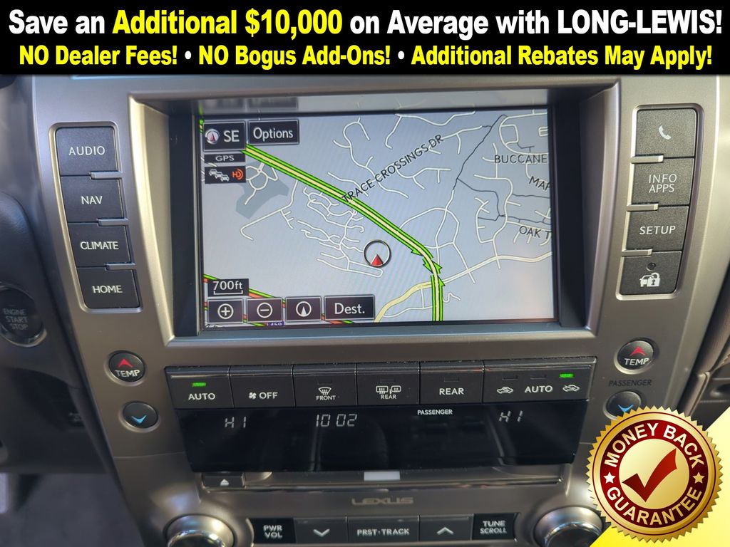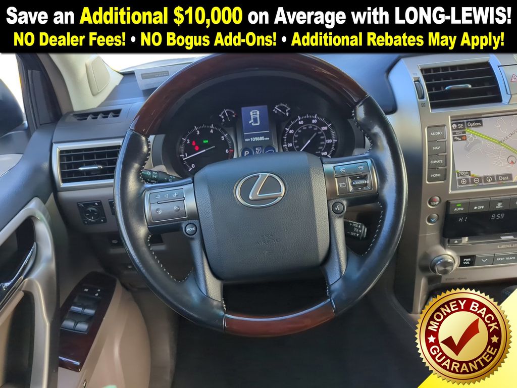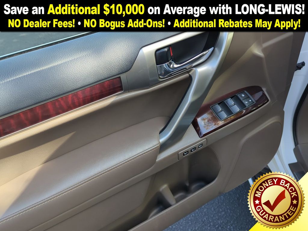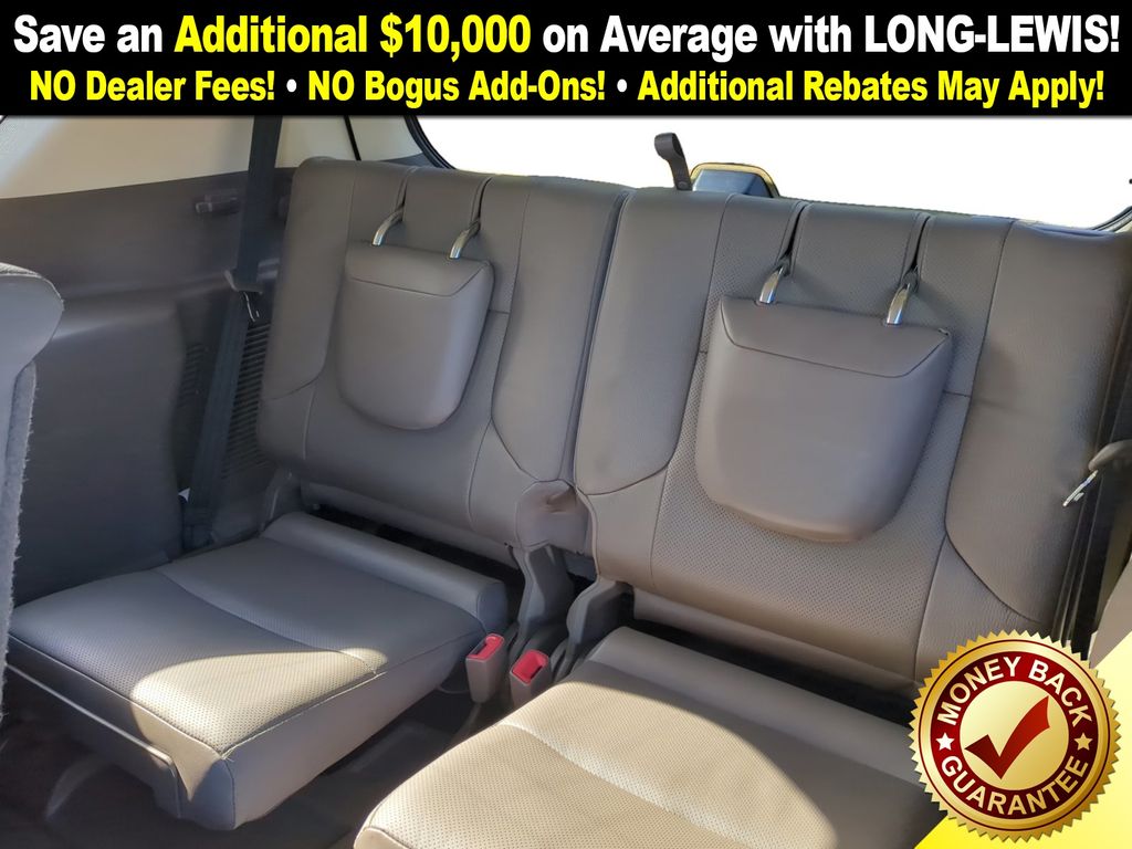 3.909 Axle Ratio, 3rd row seats: split-bench, 4-Wheel Disc Brakes, 9 Speakers, ABS brakes, Air Conditioning, Alloy wheels, AM/FM radio: SiriusXM, Anti-whiplash front head restraints, Auto tilt-away steering wheel, Auto-dimming Rear-View mirror, Automatic temperature control, Bodyside moldings, Brake assist, Bumpers: body-color, CD player, Compass, Delay-off headlights, Driver door bin, Driver vanity mirror, Driver's Seat Mounted Armrest, Dual front impact airbags, Dual front side impact airbags, Electronic Stability Control, Emergency communication system, Exterior Parking Camera Rear, Front anti-roll bar, Front Bucket Seats, Front dual zone A/C, Front reading lights, Front wheel independent suspension, Fully automatic headlights, Garage door transmitter: HomeLink, Heated door mirrors, Illuminated entry, Illuminated running boards, Knee airbag, Leather Shift Knob, Leather steering wheel, Low tire pressure warning, Memory seat, Occupant sensing airbag, Outside temperature display, Overhead airbag, Overhead console, Panic alarm, Passenger door bin, Passenger seat mounted armrest, Passenger vanity mirror, Power door mirrors, Power driver seat, Power moonroof, Power passenger seat, Power steering, Power windows, Radio data system, Radio: AM/FM Lexus Premium Audio, Rear anti-roll bar, Rear reading lights, Rear seat center armrest, Rear side impact airbag, Rear window defroster, Rear window wiper, Remote keyless entry, Roof rack: rails only, Security system, Speed control, Speed-sensing steering, Split folding rear seat, Spoiler, Steering wheel memory, Steering wheel mounted audio controls, Synthetic Leather NuLuxe Seat Trim, Tachometer, Telescoping steering wheel, Tilt steering wheel, Traction control, Trip computer, Turn signal indicator mirrors, Variably intermittent wipers, Wheels: 18" x 7.5J 6-Spoke Aluminum Alloy.