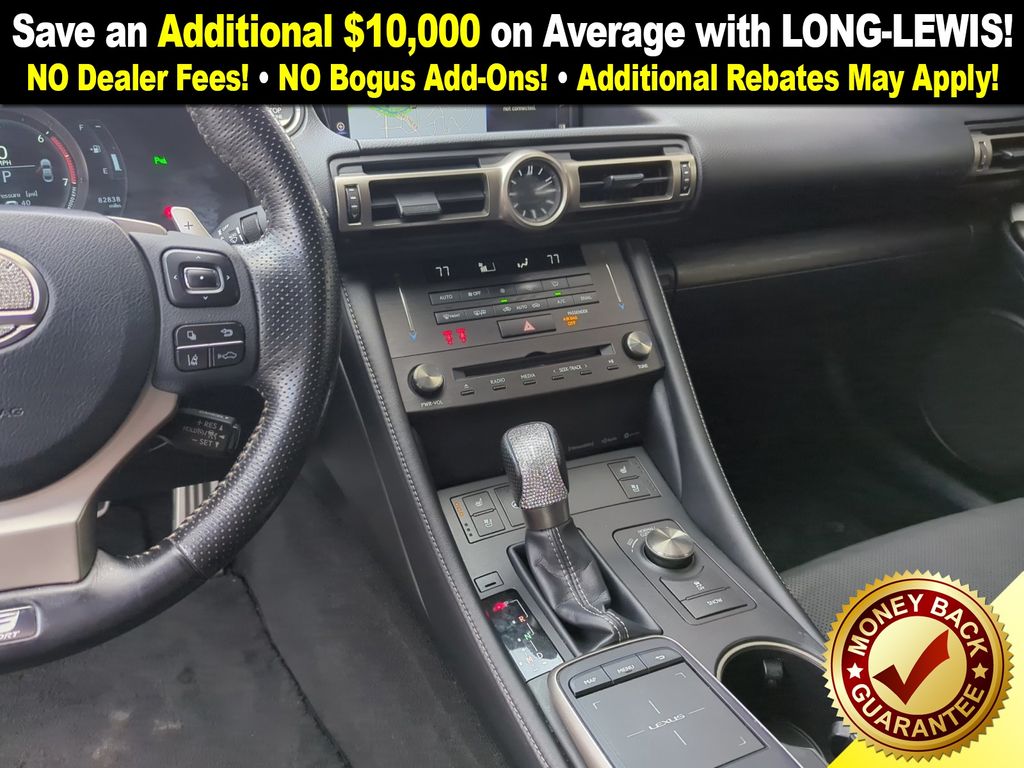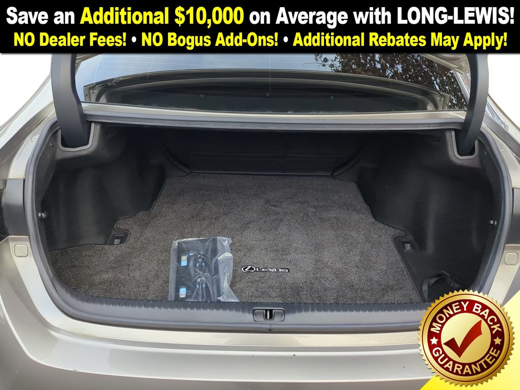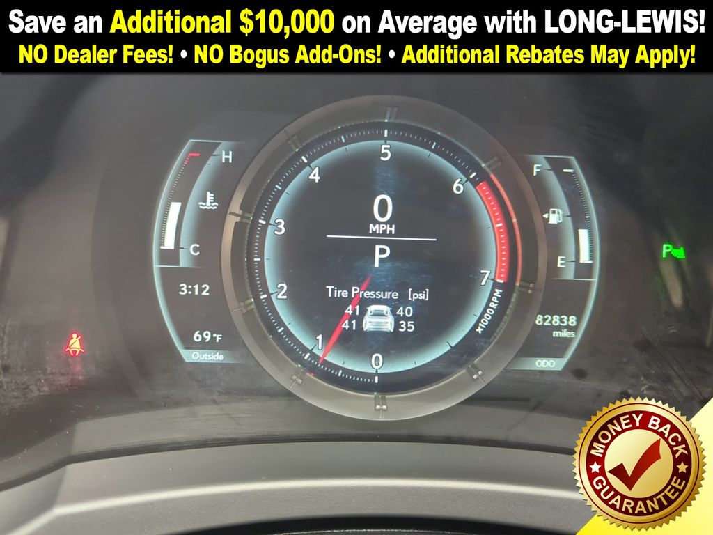 10 Speakers, 4-Wheel Disc Brakes, ABS brakes, Air Conditioning, Alloy wheels, AM/FM radio: SiriusXM, Auto High-beam Headlights, Auto-dimming Rear-View mirror, Automatic temperature control, Blind Spot Monitor w/Rear Cross Traffic Alert, Brake assist, Bumpers: body-color, CD player, Compass, Delay-off headlights, Driver door bin, Driver vanity mirror, Dual front impact airbags, Dual front side impact airbags, Electronic Stability Control, Emergency communication system: Lexus Enform w/Safety Connect, Exterior Parking Camera Rear, Four wheel independent suspension, Front anti-roll bar, Front Bucket Seats, Front Center Armrest, Front dual zone A/C, Front reading lights, Fully automatic headlights, Garage door transmitter: HomeLink, Heated & Vented Driver & Passenger Seats, Heated door mirrors, Illuminated entry, Knee airbag, Leather Shift Knob, Low tire pressure warning, Occupant sensing airbag, Outside temperature display, Overhead airbag, Overhead console, Panic alarm, Passenger door bin, Passenger vanity mirror, Power door mirrors, Power driver seat, Power passenger seat, Power steering, Power windows, Radio data system, Rear anti-roll bar, Rear reading lights, Rear side impact airbag, Rear window defroster, Remote keyless entry, Security system, Speed control, Speed-sensing steering, Speed-Sensitive Wipers, Split folding rear seat, Steering wheel mounted audio controls, Tachometer, Telescoping steering wheel, Tilt steering wheel, Traction control, Trip computer, Turn signal indicator mirrors, Variably intermittent wipers.