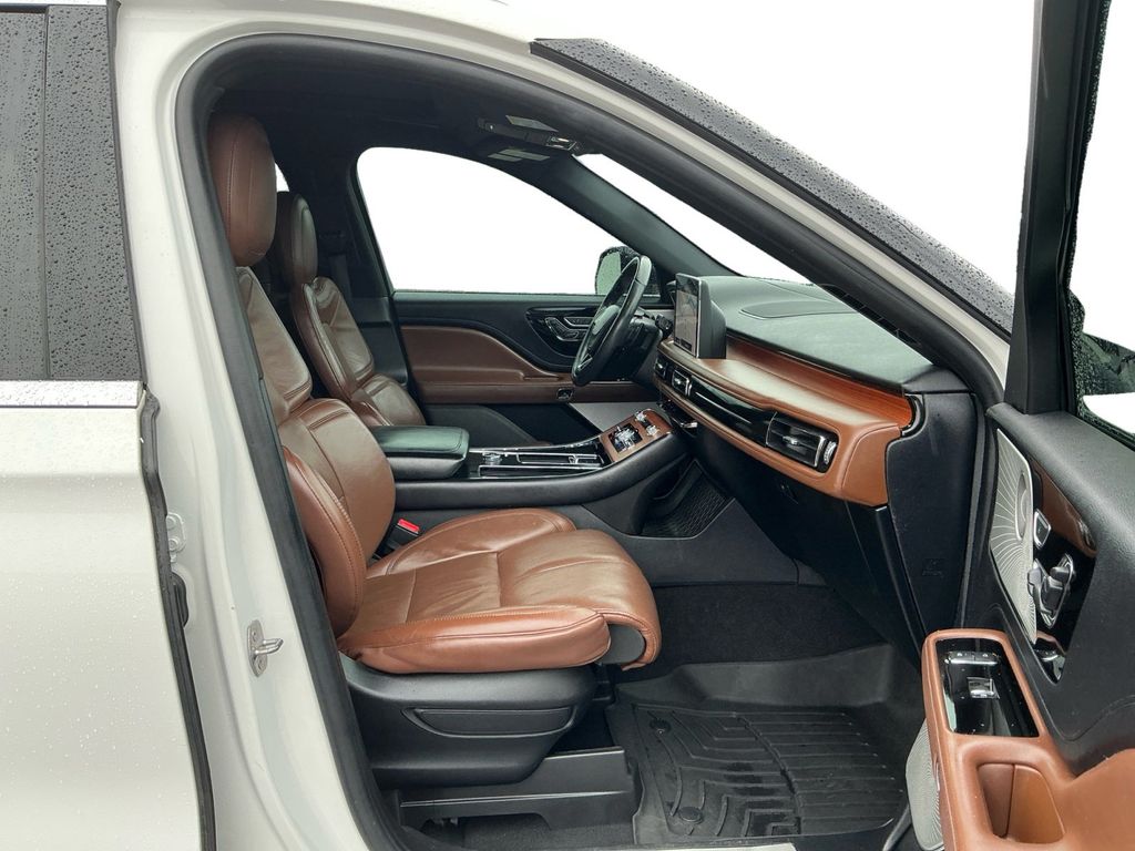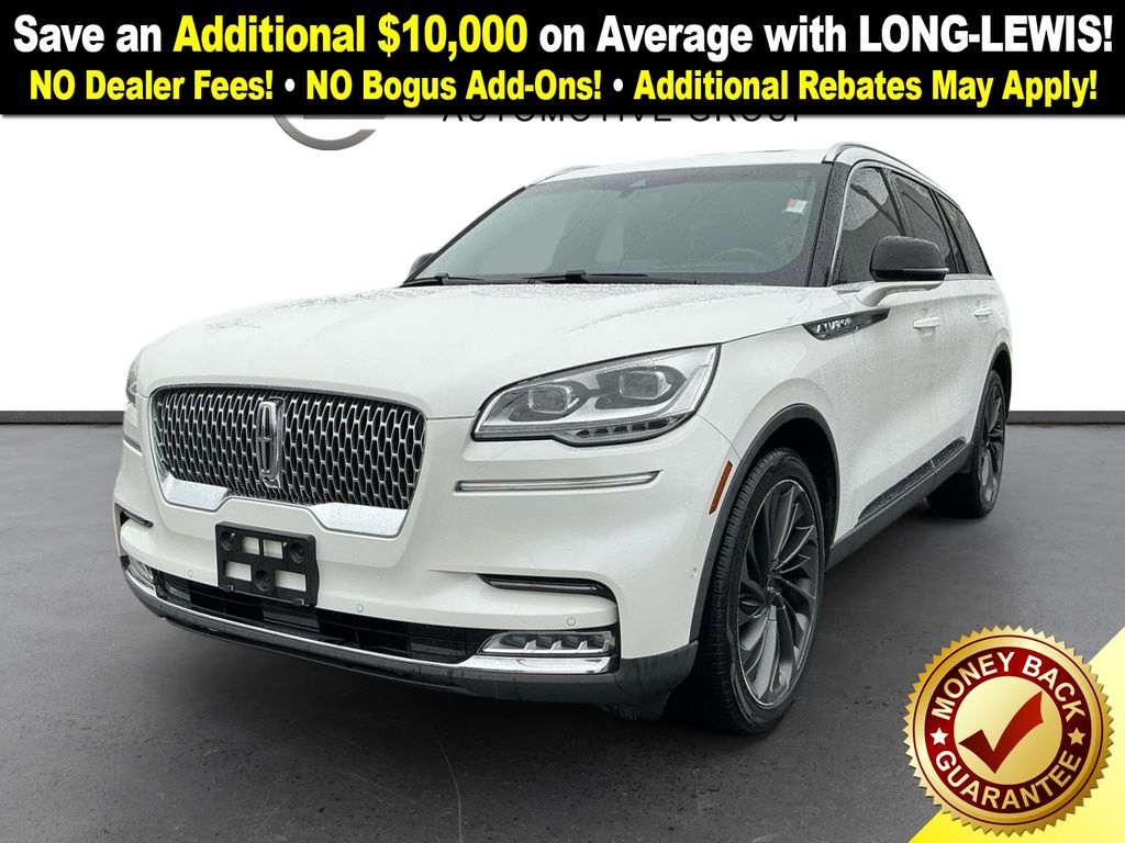 2020 Lincoln Aviator Reserve Pristine White Metallic Tri-Coat Reserve AWD 10-Speed Automatic 3.0L V6 14 Speakers, 250 Amps Alternator, 3.58 Axle Ratio, 30-Way Perfect Position Seats w/Active Motion, 3rd row seats: split-bench, 4-Pin & 7-Pin Connectors, 4-Wheel Disc Brakes, ABS brakes, Active Park Assist Plus, Adaptive Cruise Control w/Traffic Jam Assist, Adaptive Pixel LED Headlamps, Adaptive Steering, Adaptive suspension, Adaptive Suspension w/Road Preview, Air Conditioning, Air Glide Suspension w/Dynamic Lower Entry, Alloy wheels, AM/FM radio: SiriusXM, Audio memory, Auto High-beam Headlights, Auto-dimming door mirrors, Auto-dimming Rear-View mirror, Automatic temperature control, Blind Spot Detection w/Cross Traffic Alert, Brake assist, Bumpers: body-color, Class IV Hitch & Wiring, Class IV Trailer Tow Package, Compass, Convenience Package, Delay-off headlights, Driver door bin, Driver vanity mirror, Dual front impact airbags, Dual front side impact airbags, Dynamic Handling Package, Electronic Stability Control, Elements Package Plus, Emergency communication system: SYNC 3 911 Assist, Equipment Group 202A, Evasive Steering Assist, Four wheel independent suspension, Front anti-roll bar, Front Bucket Seats, Front Center Armrest, Front dual zone A/C, Front fog lights, Front License Plate Bracket, Front reading lights, Full Rear Console, Fully automatic headlights, Garage door transmitter, Head-Up Display, Heated door mirrors, Heated front seats, Heated Steering Wheel, Heated VisioBlade Wipers, Heated/Ventilated 2nd Row Outboard Seats, Heated/Ventilated Driver & Passenger Seats, HVAC memory, Illuminated entry, Illumination Package, Knee airbag, Lincoln Co-Pilot360 Plus, Lincoln Lit Star in Grille, Low tire pressure warning, Luxury Package, Memory seat, Navigation System, Occupant sensing airbag, Outside temperature display, Overhead airbag, Overhead console, Panic alarm, Panoramic Vista Roof w/Power Shade, Passenger door bin, Passenger vanity mirror, Phone As A Key, Power door mirrors, Power driver seat, Power Liftgate, Power passenger seat, Power steering, Power windows, Premium Leather Enhanced Micro-Perforated Seats, Radio data system, Radio: Revel AM/FM Audio System w/14 Speakers, Radio: Revel Ultima 3D Audio System w/28 Speakers, Rain sensing wipers, Rear air conditioning, Rear anti-roll bar, Rear audio controls, Rear Door Sunshades, Rear dual zone A/C, Rear reading lights, Rear window defroster, Rear window wiper, Remote keyless entry, Reverse Brake Assist, Security system, SiriusXM Radio, Smart Trailer Tow, Soft Close Doors, Speed control, Speed-Sensitive Wipers, Split folding rear seat, Spoiler, Steering wheel memory, Steering wheel mounted A/C controls, Steering wheel mounted audio controls, SYNC 3 Communication & Entertainment System, Tachometer, Telescoping steering wheel, Tilt steering wheel, Traction control, Trailer Sway Control, Trip computer, Turn signal indicator mirrors, Variably intermittent wipers, Ventilated front seats, Wheels: 20" Bright Machined Aluminum, Wheels: 22" Ultra Bright Machined Aluminum, Wireless Charging Pad.