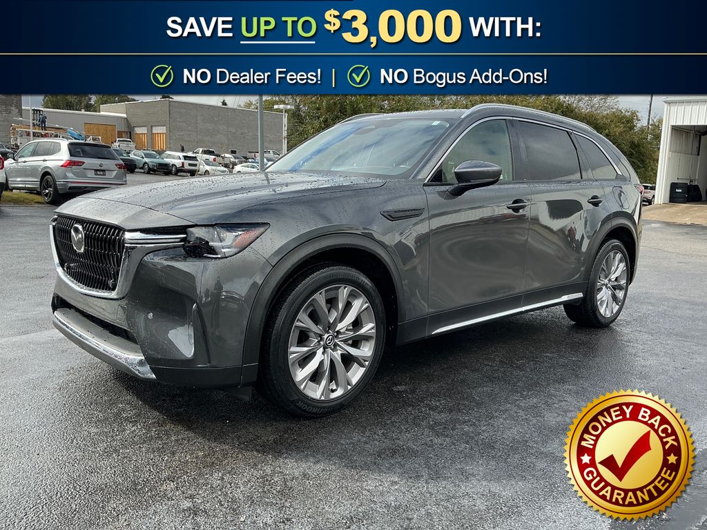 2024 Mazda CX-90 3.3 Turbo Premium Machine Gray Metallic 3.3 Turbo Premium AWD 8-Speed Automatic I6 Turbo 12 Speakers, 3.692 Axle Ratio, 3rd row seats: bench, 4-Wheel Disc Brakes, ABS brakes, Air Conditioning, Alloy wheels, AM/FM radio: SiriusXM, Auto High-beam Headlights, Auto-dimming Rear-View mirror, Automatic temperature control, Brake assist, Bumpers: body-color, Compass, Delay-off headlights, Driver door bin, Driver vanity mirror, Dual front impact airbags, Dual front side impact airbags, E911 Automatic Emergency Notification, Electronic Stability Control, Emergency communication system: MAZDA CONNECT, Exterior Parking Camera Rear, Four wheel independent suspension, Front anti-roll bar, Front Bucket Seats, Front Center Armrest w/Storage, Front dual zone A/C, Front reading lights, Fully automatic headlights, Garage door transmitter: HomeLink, Heads-Up Display, Heated door mirrors, Heated Front Bucket Seats, Heated front seats, Illuminated entry, Infotainment System Voice Command, Knee airbag, Leather Seat Trim, Leather Shift Knob, Leather steering wheel, Low tire pressure warning, Machine Gray Metallic Paint Charge, Mazda Connected Services, Mazda Navigation System, Memory seat, Navigation system: MAZDA CONNECT, Occupant sensing airbag, Outside temperature display, Overhead airbag, Overhead console, Pandora Internet Radio Integration, Panic alarm, Passenger door bin, Passenger vanity mirror, Power door mirrors, Power driver seat, Power Liftgate, Power moonroof, Power passenger seat, Power steering, Power windows, Radio Broadcast Data System Program Information, Radio data system, Radio: AM/FM w/Bose Audio Sound System, Rain sensing wipers, Rear air conditioning, Rear anti-roll bar, Rear reading lights, Rear window defroster, Rear window wiper, Remote keyless entry, SMS Text Msg Audio Delivery & Reply, Speed control, Speed-sensing steering, Split folding rear seat, Spoiler, Steering wheel mounted audio controls, Tachometer, Telescoping steering wheel, Tilt steering wheel, Traction control, Trip computer, Turn signal indicator mirrors, Variably intermittent wipers, Wheels: 21" x 9.5J Aluminum Alloy.