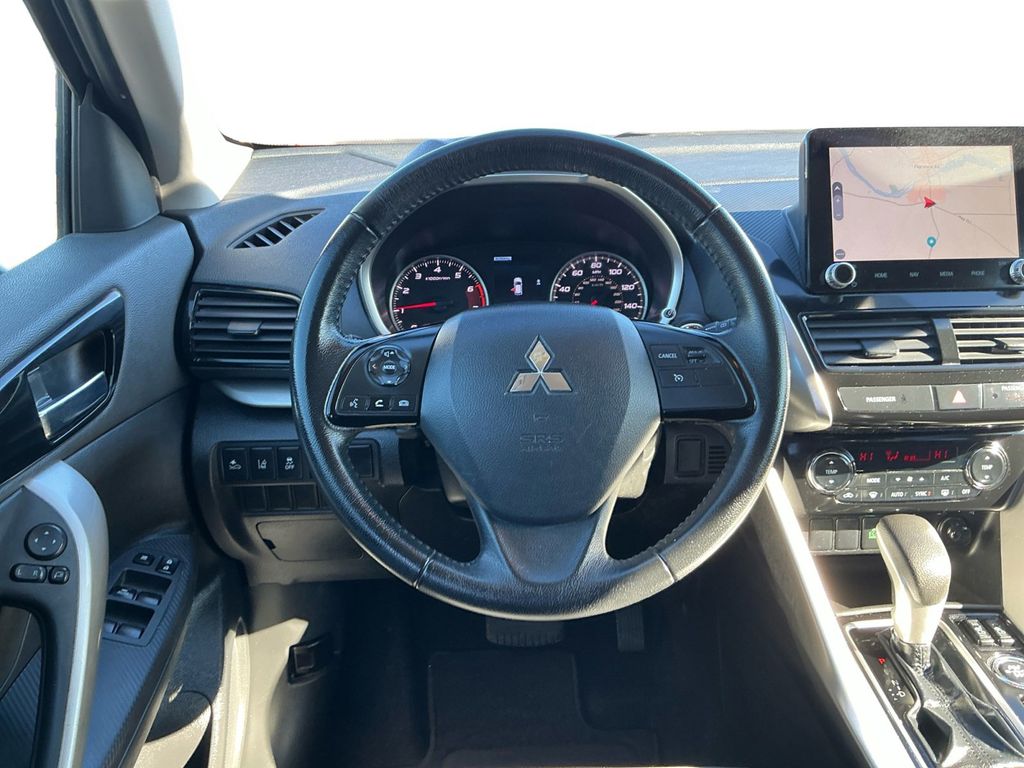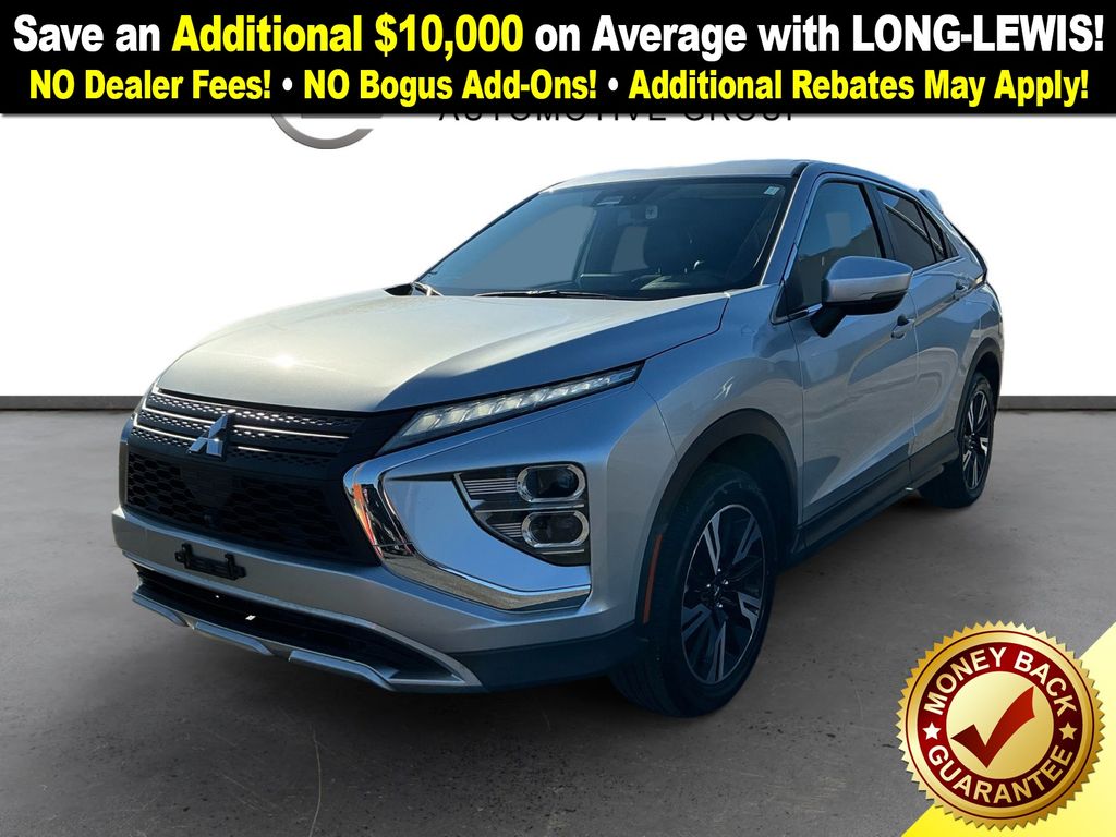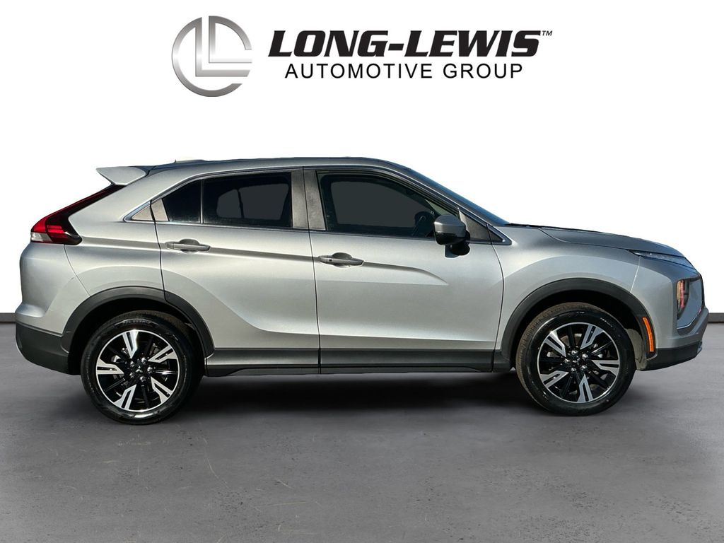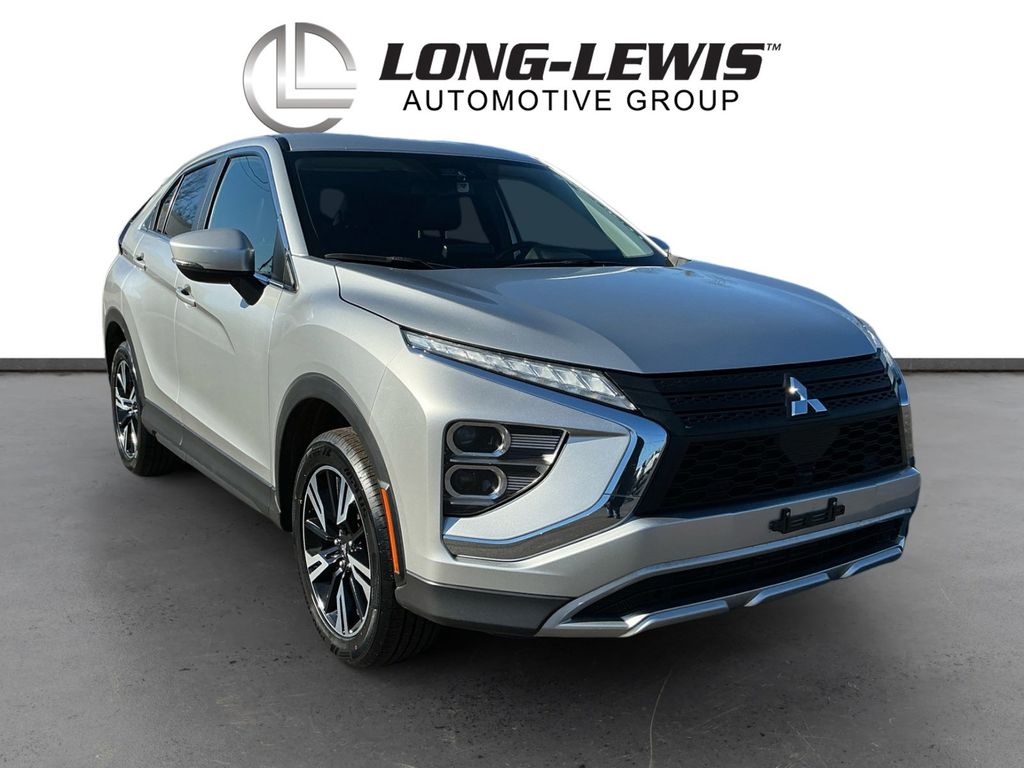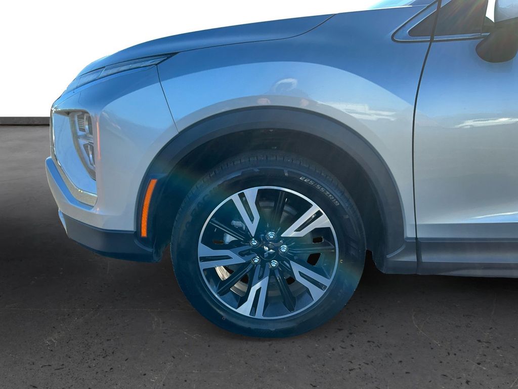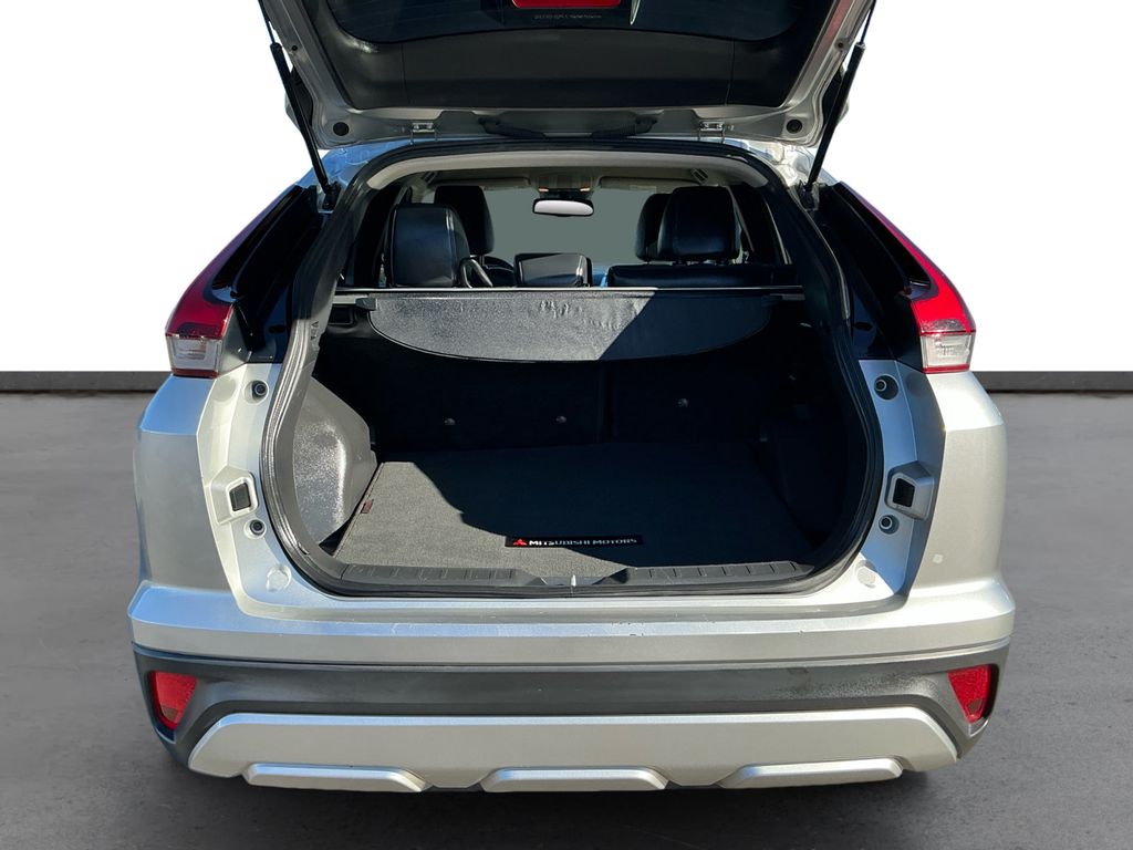 2023 Mitsubishi Eclipse Cross SE Silver SE 4WD CVT 1.5L I4 DI Turbocharged DOHC 16V LEV3-ULEV70 152hp 4-Wheel Disc Brakes, 6.39 Axle Ratio, ABS brakes, Air Conditioning, Alloy wheels, Automatic temperature control, Brake assist, Bumpers: body-color, Driver door bin, Driver vanity mirror, Dual front impact airbags, Dual front side impact airbags, Electronic Stability Control, Exterior Parking Camera Rear, Four wheel independent suspension, Front anti-roll bar, Front Bucket Seats, Front Center Armrest, Front fog lights, Front reading lights, Heated door mirrors, Illuminated entry, Knee airbag, Low tire pressure warning, Occupant sensing airbag, Outside temperature display, Overhead airbag, Overhead console, Panic alarm, Passenger door bin, Passenger vanity mirror, Power door mirrors, Power steering, Power windows, Radio data system, Rear anti-roll bar, Rear seat center armrest, Rear window defroster, Rear window wiper, Remote keyless entry, Security system, Speed control, Speed-sensing steering, Split folding rear seat, Spoiler, Steering wheel mounted audio controls, Tachometer, Telescoping steering wheel, Tilt steering wheel, Traction control, Trip computer, Turn signal indicator mirrors, Variably intermittent wipers.