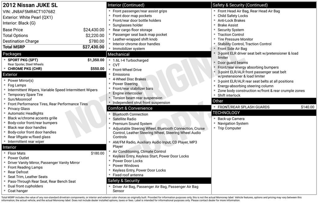 2012 Nissan Juke SL SUV I4 DOHC 16V