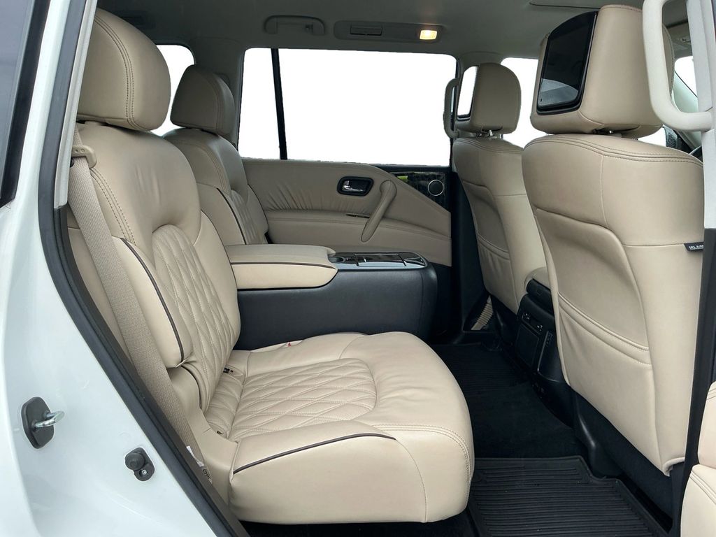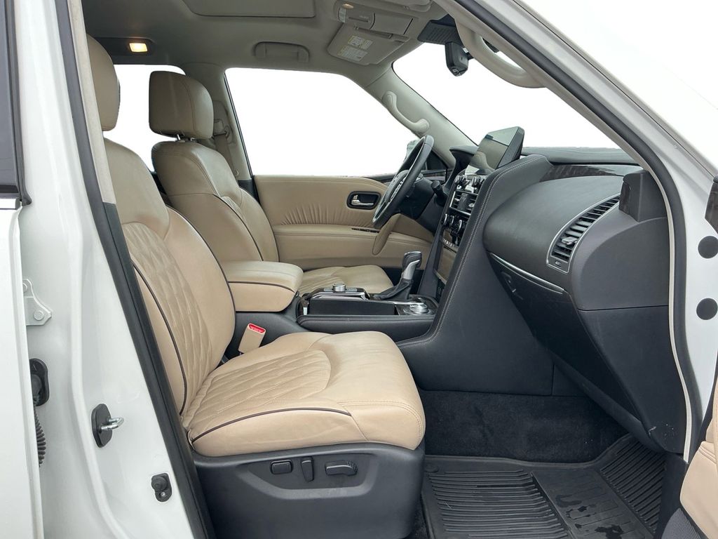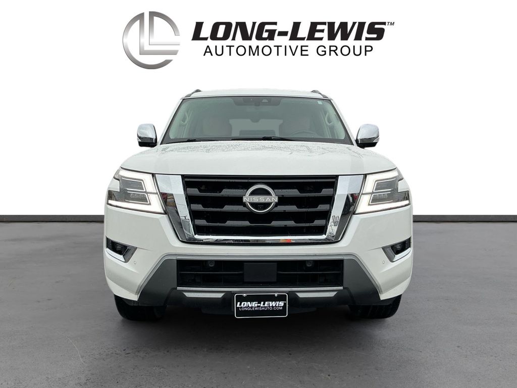 2021 Nissan Armada Platinum Aspen White Tricoat Platinum 4WD 7-Speed Automatic 5.6L V8 DOHC 32V LEV3-ULEV125 400hp 4WD, 13 Speakers, 2.94 Axle Ratio, 2nd Row Captain's Chairs, 2nd Row Center Console w/Padded Armrest, 3rd Row Carpeted Floor Mats - Captain Seat, 3rd row seats: split-bench, 4-Wheel Disc Brakes, A/V remote, ABS brakes, Air Conditioning, Alloy wheels, AM/FM radio: SiriusXM, Anti-whiplash front head restraints, Auto High-beam Headlights, Auto tilt-away steering wheel, Auto-dimming door mirrors, Auto-dimming Rear-View mirror, Auto-leveling suspension, Automatic temperature control, Brake assist, Bumpers: body-color, Captain's Chairs Package, Climate-Controlled Front Bucket Seats, Cross Bars, Delay-off headlights, Driver door bin, Driver vanity mirror, Dual front impact airbags, Dual front side impact airbags, Electronic Stability Control, Emergency communication system: NissanConnect Services, Exterior Parking Camera Rear, Four wheel independent suspension, Front anti-roll bar, Front Bucket Seats, Front Center Armrest, Front dual zone A/C, Front fog lights, Front reading lights, Fully automatic headlights, Garage door transmitter: HomeLink, Headphones, Heated door mirrors, Heated front seats, Heated rear seats, Heated steering wheel, Illuminated entry, Leather Shift Knob, Low tire pressure warning, Memory seat, Navigation System, NissanConnect featuring Apple CarPlay and Android Auto, Occupant sensing airbag, Outside temperature display, Overhead airbag, Overhead console, Panic alarm, Passenger door bin, Passenger vanity mirror, Power door mirrors, Power driver seat, Power Liftgate, Power moonroof, Power passenger seat, Power steering, Power windows, Quilted Leather Seat Trim, Radio: NissanConnect w/SiriusXM, Rain sensing wipers, Rear air conditioning, Rear anti-roll bar, Rear reading lights, Rear seat center armrest, Rear window defroster, Rear window wiper, Reclining 3rd row seat, Remote keyless entry, Security system, Special Paint - Aspen White, Speed control, Speed-sensing steering, Speed-Sensitive Wipers, Split folding rear seat, Spoiler, Steering wheel memory, Steering wheel mounted audio controls, Tachometer, Telescoping steering wheel, Tilt steering wheel, Traction control, Trip computer, Turn signal indicator mirrors, Variably intermittent wipers, Ventilated front seats, Voltmeter, Wheels: 22" Machine-Faced w/Tinted Clear Coat, 4WD.