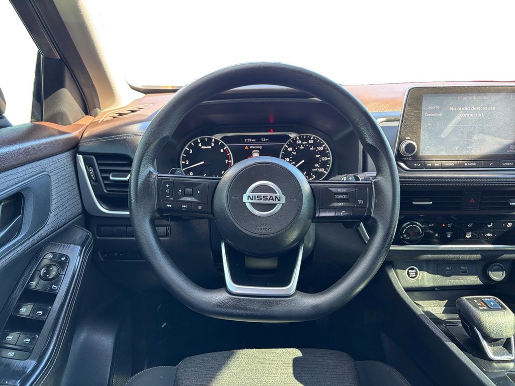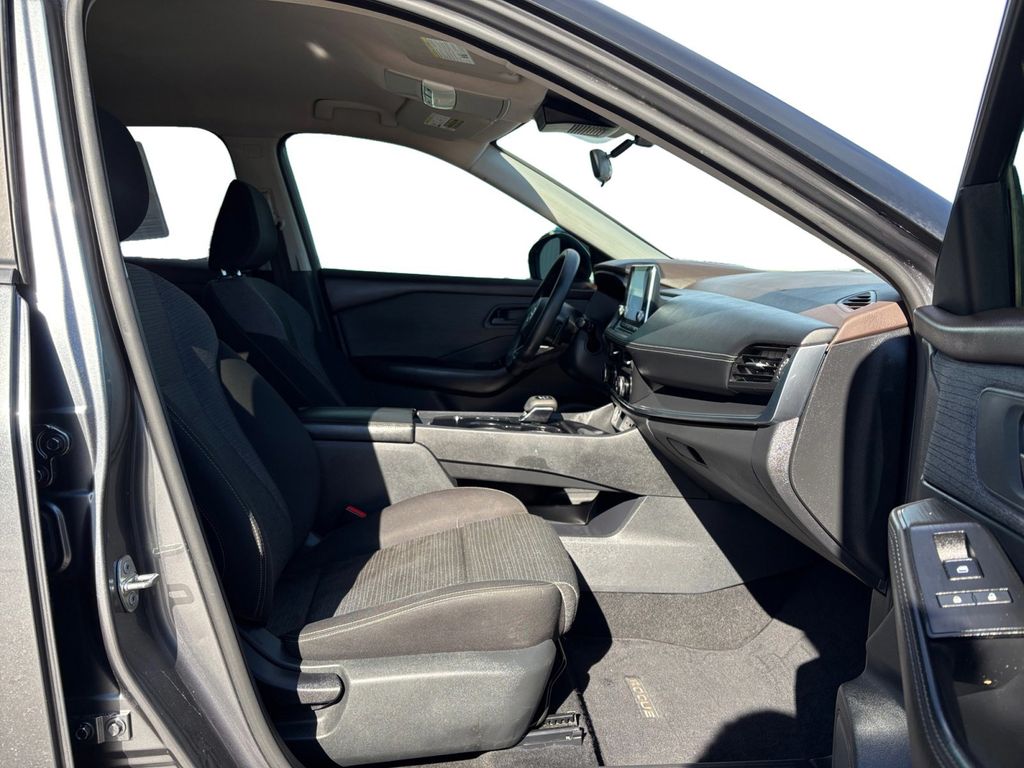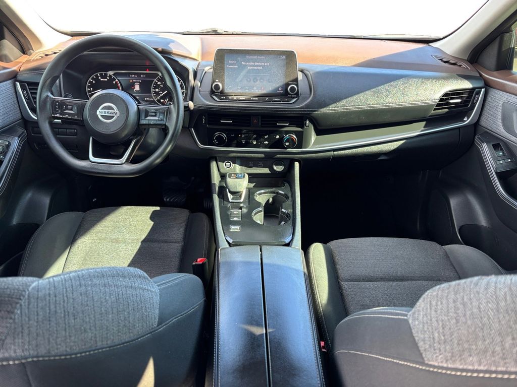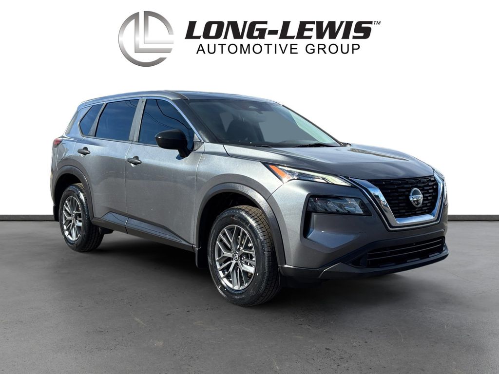 2021 Nissan Rogue S Gun Metallic S FWD CVT with Xtronic 2.5L I4 DOHC 16V 17" Aluminum Alloy Wheels, 4 Speakers, 4-Wheel Disc Brakes, 5.604 Axle Ratio, ABS brakes, Air Conditioning, Alloy wheels, AM/FM Radio, AM/FM radio, Auto High-beam Headlights, Black Splash Guards (Set of 4), Blind Spot Warning, Brake assist, Bumpers: body-color, Cloth Seat Trim, Delay-off headlights, Driver door bin, Driver vanity mirror, Dual front impact airbags, Dual front side impact airbags, Electronic Stability Control, First Aid Kit, Floor Mats w/1-Piece Cargo Area Protector, Four wheel independent suspension, Front anti-roll bar, Front Bucket Seats, Front Center Armrest, Front reading lights, Fully automatic headlights, Illuminated entry, Knee airbag, Low tire pressure warning, NissanConnect featuring Apple CarPlay and Android Auto, Occupant sensing airbag, Outside temperature display, Overhead airbag, Overhead console, Panic alarm, Passenger door bin, Passenger vanity mirror, Power door mirrors, Power steering, Power windows, Radio data system, Rear anti-roll bar, Rear Parking Sensors, Rear seat center armrest, Rear side impact airbag, Rear window defroster, Rear window wiper, Remote keyless entry, Speed control, Speed-Sensitive Wipers, Split folding rear seat, Spoiler, Steering wheel mounted audio controls, Tachometer, Telescoping steering wheel, Tilt steering wheel, Traction control, Trip computer, Variably intermittent wipers.