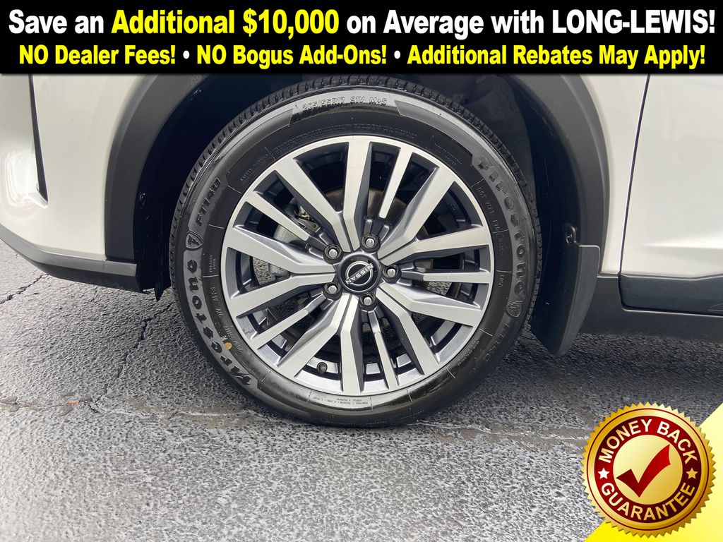 The SV trim adds a lot of features over the base: 17-inch alloy wheels, silver-painted roof rails, electric parking brake, rear disc brakes. On the inside you get an 8-inch touchscreen, additional USB-C port, remote engine start, the Nissan Intelligent Key system. The SV also includes a built-in WiFi hotspot trial and connected services via the MyNISSAN app.