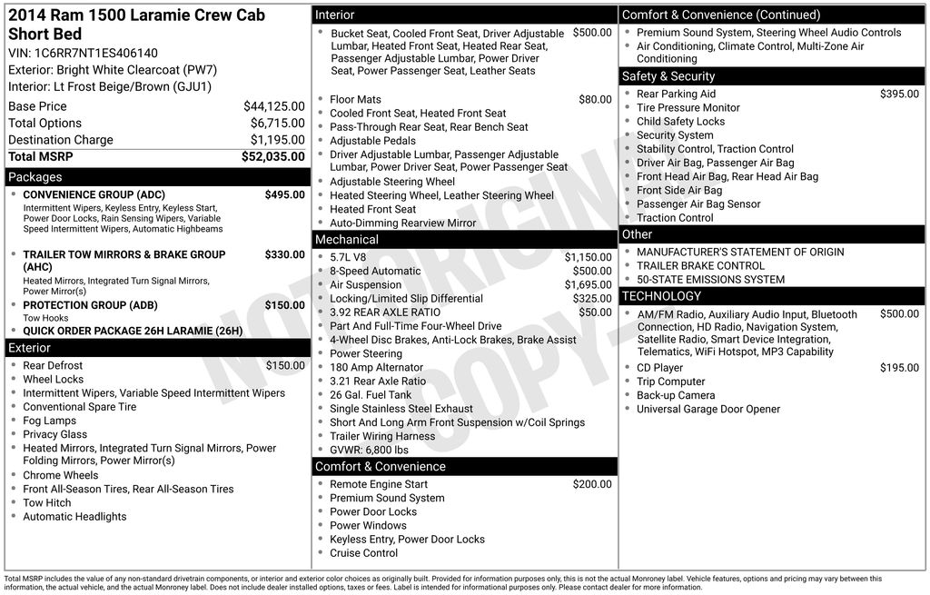 2014 Ram 1500 Crew Cab Laramie 4WD with the 5.7 Hemi is a great truck comfortable, powerful, and nicely equipped.