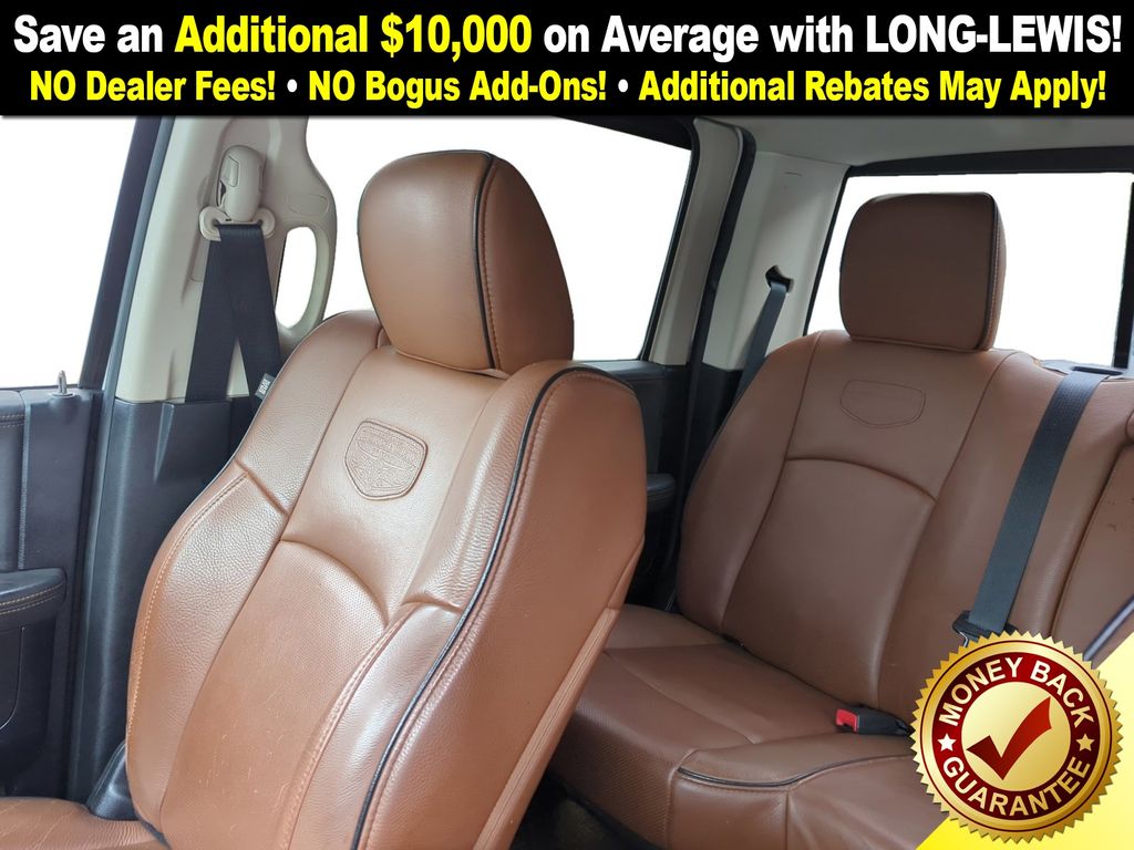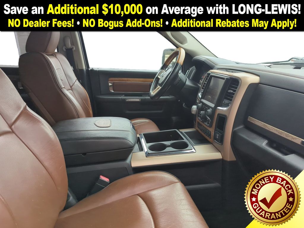 10 Speakers, 115V Auxiliary Power Outlet, 20" x 9" Aluminum Polished/Gold Inserts Wheels, 20" x 9" Polished Aluminum w/Silver Inserts Wheels, 3.21 Rear Axle Ratio, 4-Wheel Disc Brakes, ABS brakes, Adjustable pedals, Air Conditioning, Alloy wheels, AM/FM radio, Anti-Spin Differential Rear Axle, Audio memory, Auto High Beam Headlamp Control, Auto-dimming door mirrors, Auto-dimming Rear-View mirror, Automatic temperature control, Brake assist, Bucket Seats, Center Hub, Chrome Tubular Side Steps, Compass, Convenience Group, Delay-off headlights, Driver door bin, Driver vanity mirror, Dual front impact airbags, Dual front side impact airbags, Electronic Stability Control, Emergency communication system, Folding Flat Load Floor Storage, Front anti-roll bar, Front Bucket Seats, Front Center Armrest w/Storage, Front dual zone A/C, Front fog lights, Front reading lights, Front wheel independent suspension, Fully automatic headlights, Garage door transmitter, Genuine wood dashboard insert, Genuine wood door panel insert, Heated door mirrors, Heated Front Seats, Heated front seats, Heated rear seats, Heated Second Row Seats, Heated Steering Wheel, Heated steering wheel, High Back Seats, Illuminated entry, Keyless Enter-N-Go, Leather Shift Knob, Leather steering wheel, Low tire pressure warning, Memory seat, Navigation System, Occupant sensing airbag, Outside temperature display, Overhead airbag, Overhead console, Panic alarm, ParkSense Front/Rear Park Assist System (DISC), ParkView Rear Back-Up Camera, Passenger door bin, Passenger vanity mirror, Pedal memory, Power 10-Way Memory Driver & 6-Way Passenger Seats, Power door mirrors, Power driver seat, Power Lumbar Adjust, Power passenger seat, Power steering, Power windows, Premium Filigree Leather Seats, Quick Order Package 26K Longhorn, Radio data system, Radio: Uconnect 8.4AN AM/FM/SXM/HD/BT/NAV, Rain Sensitive Windshield Wipers, Rear 60/40 Split Folding Seat, Rear anti-roll bar, Rear seat center armrest, Rear step bumper, Remote keyless entry, Remote Proximity Keyless Entry, Security system, Single Disc Remote CD Player, Speed control, Split folding rear seat, Steering Wheel Mounted Audio Controls, Steering wheel mounted audio controls, Tachometer, Tilt steering wheel, Traction control, Trip computer, Turn signal indicator mirrors, Variably intermittent wipers, Ventilated Front Seats, Ventilated front seats, Voltmeter.