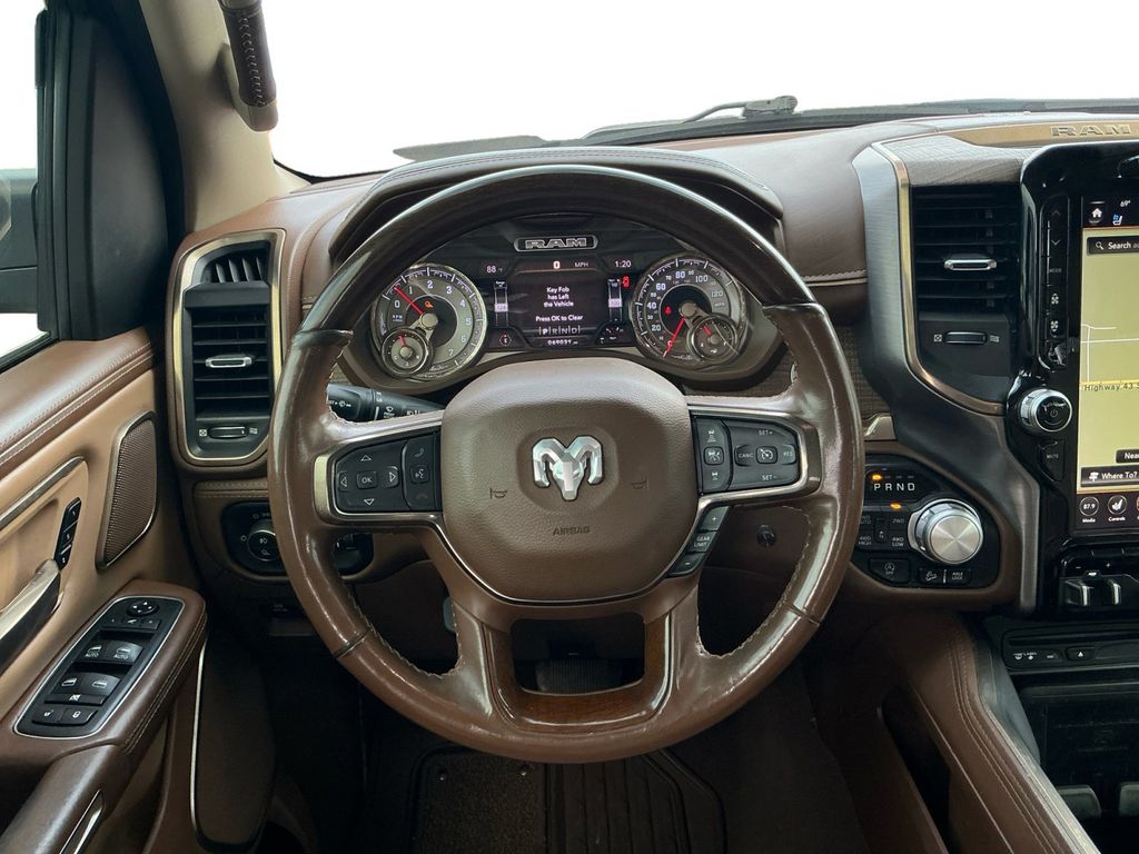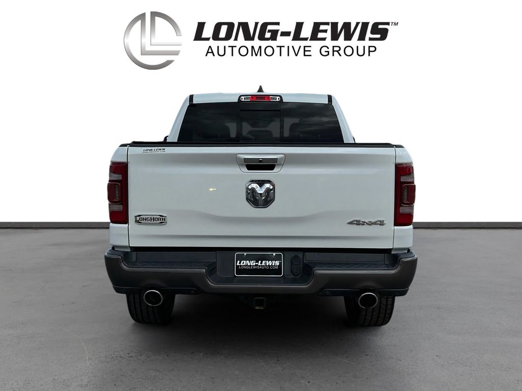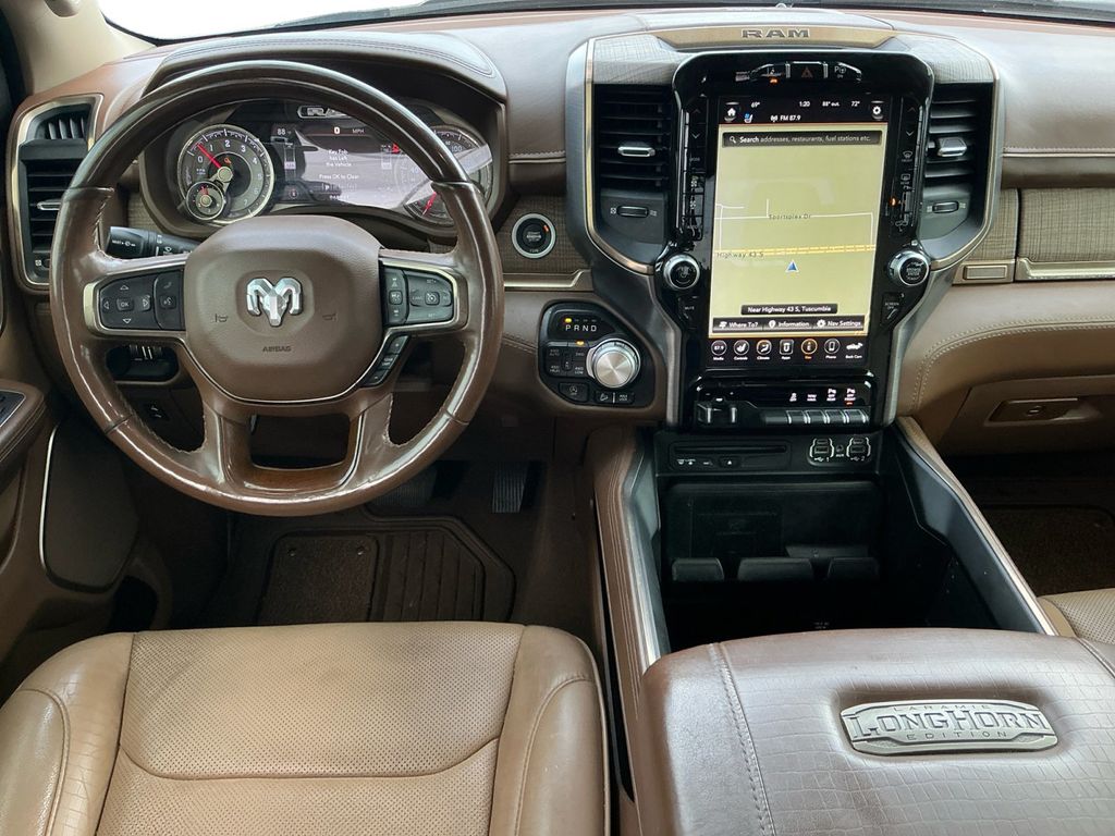 2019 Ram 1500 Laramie Longhorn Ivory White Tri-Coat Pearlcoat Laramie Longhorn 4WD 8-Speed Automatic HEMI 5.7L V8 Multi Displacement VVT #1 Seat Foam Cushion, 1-Yr SiriusXM Guardian Trial, 10 Speakers, 12" Touchscreen Display, 3 Rear Seat Head Restraints, 3.21 Rear Axle Ratio, 33 Gallon Fuel Tank, 4 Way Front Headrests, 4-Wheel Disc Brakes, 48V Belt Starter Generator, ABS brakes, Adjustable pedals, Advanced Safety Group, Air Conditioning, Alloy wheels, AM/FM radio: SiriusXM, Apple CarPlay, Apple CarPlay/Android Auto, Audio memory, Auto High-beam Headlights, Auto-dimming door mirrors, Auto-dimming Rear-View mirror, Automatic temperature control, Brake assist, Bucket Seats, Bumpers: chrome, Compass, Delay-off headlights, Disassociated Touchscreen Display, Dome Dual LED Reading Lamp, Driver door bin, Driver Seat Memory, Driver vanity mirror, Dual front impact airbags, Dual front side impact airbags, Dual-Pane Panoramic Sunroof, E-Locker Rear Axle, Electronic Stability Control, Emergency communication system: SiriusXM Guardian, Front anti-roll bar, Front Bucket Seats, Front Center Armrest w/Storage, Front dual zone A/C, Front Extra HD Shock Absorbers, Front fog lights, Front reading lights, Front Seat Back Map Pockets, Front wheel independent suspension, Fully automatic headlights, Garage door transmitter, Genuine wood console insert, Genuine wood dashboard insert, Genuine wood door panel insert, Google Android Auto, GPS Antenna Input, GPS Navigation, HD Radio, Heated door mirrors, Heated Front Seats, Heated front seats, Heated rear seats, Heated Second Row Seats, Heated Steering Wheel, Heated steering wheel, Hill Descent Control, Illuminated entry, Integrated Center Stack Radio, Leather steering wheel, LED Dome/Reading Lamp, Longhorn Level 1 Equipment Group, Low tire pressure warning, Memory seat, Navigation System, No Satellite Coverage w/HI/AK/PR/VI/GU, Occupant sensing airbag, Off Road Decals, Off Road Group, Outside temperature display, Overhead airbag, Overhead console, Panic alarm, ParkView Rear Back-Up Camera, Passenger door bin, Passenger vanity mirror, Pedal memory, Power 4-Way Driver Lumbar Adjust, Power 4-Way Passenger Lumbar Adjust, Power 8-Way Driver & Passenger Seats, Power door mirrors, Power driver seat, Power passenger seat, Power steering, Power windows, Premium Leather Seats w/Filigree, Quick Order Package 27K Longhorn, Radio data system, Radio: Uconnect 12 w/Navigation, Radio: Uconnect 4C Nav w/8.4" Display, Rain sensing wipers, Rear 60/40 Folding Split Recline Seat, Rear anti-roll bar, Rear Extra HD Shock Absorbers, Rear seat center armrest, Rear step bumper, Rear window defroster, Remote CD player, Remote keyless entry, Security system, SiriusXM Satellite Radio, SiriusXM Traffic Plus, SiriusXM Travel Link, SiriusXM w/360L, Speed control, Split folding rear seat, Steering wheel mounted audio controls, Tachometer, Telescoping steering wheel, Tilt steering wheel, Traction control, Trailer Brake Control, Trip computer, Turn signal indicator mirrors, Variably intermittent wipers, Ventilated Front Seats, Ventilated front seats, Voltmeter, Wheels: 20" x 9" Aluminum Painted/Polished.
