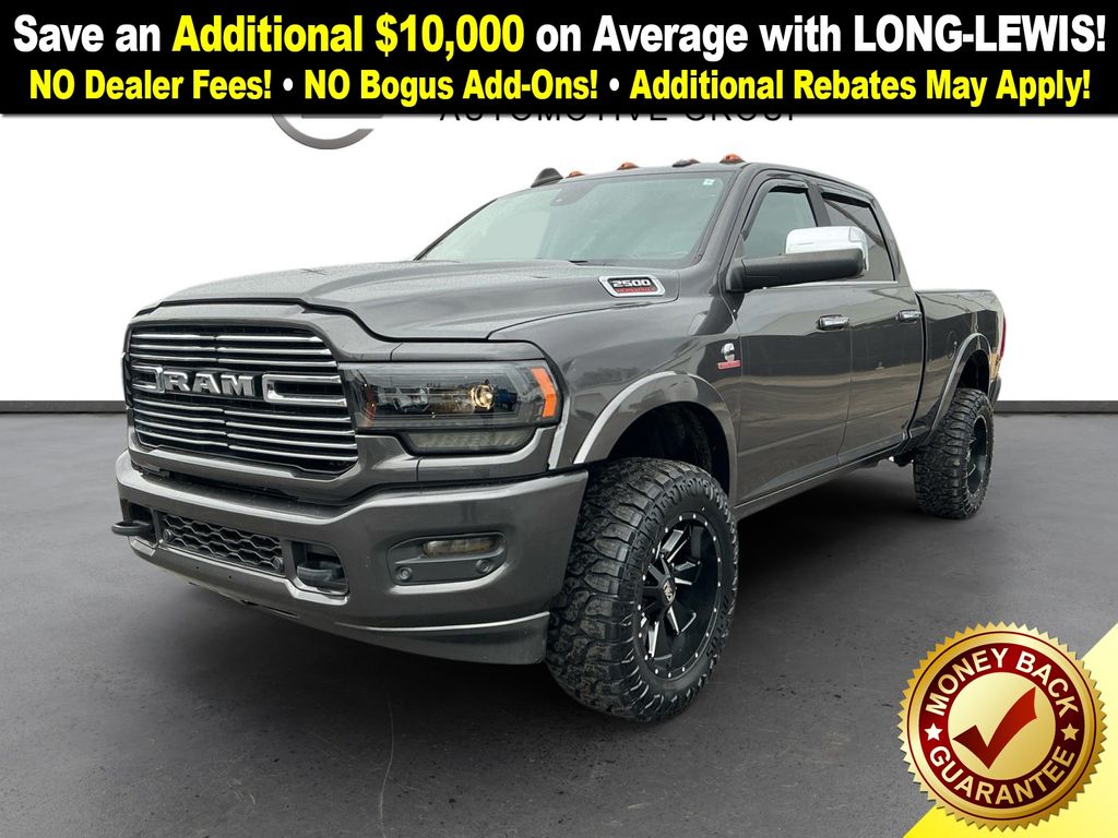 2021 Ram 2500 Laramie Granite Crystal Metallic Clearcoat Laramie 4WD 6-Speed Automatic Cummins 6.7L I6 Turbodiesel 1 Year Telematics Service, 10 Speakers, 115V Auxiliary Rear Power Outlet, 2 Way Rear Headrest Seat, 220 Amp Alternator, 3.73 Axle Ratio, 4 Way Front Headrests, 4-Wheel Disc Brakes, 8.4" Touchscreen Display, ABS brakes, Active Noise Control System, Adjustable pedals, Air Conditioning, Alloy wheels, AM/FM radio: SiriusXM, Anti-Spin Differential Rear Axle, Apple CarPlay, Apple CarPlay/Android Auto, Auto-dimming Rear-View mirror, Automatic temperature control, Brake assist, Bumpers: chrome, Compass, Delay-off headlights, Driver door bin, Driver vanity mirror, Dual front impact airbags, Dual front side impact airbags, Electronic Stability Control, Electronically Controlled Throttle, Front anti-roll bar, Front Center Armrest w/Storage, Front dual zone A/C, Front fog lights, Front License Plate Bracket, Front reading lights, Front Seat Back Map Pockets, Fully automatic headlights, Garage door transmitter, Google Android Auto, GPS Antenna Input, Heated door mirrors, Heated Front Seats, Heated front seats, Heated Steering Wheel, Heated steering wheel, Illuminated entry, Integrated Center Stack Radio, Integrated Voice Command w/Bluetooth, Leather steering wheel, Leather Trim 40/20/40 Bench Seat, Low tire pressure warning, Occupant sensing airbag, Outside temperature display, Overhead airbag, Overhead console, Panic alarm, ParkView Rear Back-Up Camera, Passenger door bin, Passenger vanity mirror, Power 2-Way Driver Lumbar Adjust, Power 2-Way Passenger Lumbar Adjust, Power Adjust 8-Way Driver Seat, Power Adjust 8-Way Front Passenger Seat, Power door mirrors, Power driver seat, Power passenger seat, Power steering, Power windows, Quick Order Package 2HH Laramie, Radio data system, Radio: Uconnect 4 w/8.4" Display, RAM Telematics, Rear 60/40 Folding Seat, Rear anti-roll bar, Rear reading lights, Rear seat center armrest, Rear step bumper, Rear window defroster, Remote keyless entry, Security system, SiriusXM Satellite Radio, Speed control, Split folding rear seat, Steering wheel mounted audio controls, Tachometer, Tilt steering wheel, Tip Start, Tow Hooks, Traction control, Trip computer, Turn signal indicator mirrors, Variably intermittent wipers, Vendor Painted Cargo Box Tracking, Voltmeter, Wheels: 18" x 8.0" Polished Aluminum.