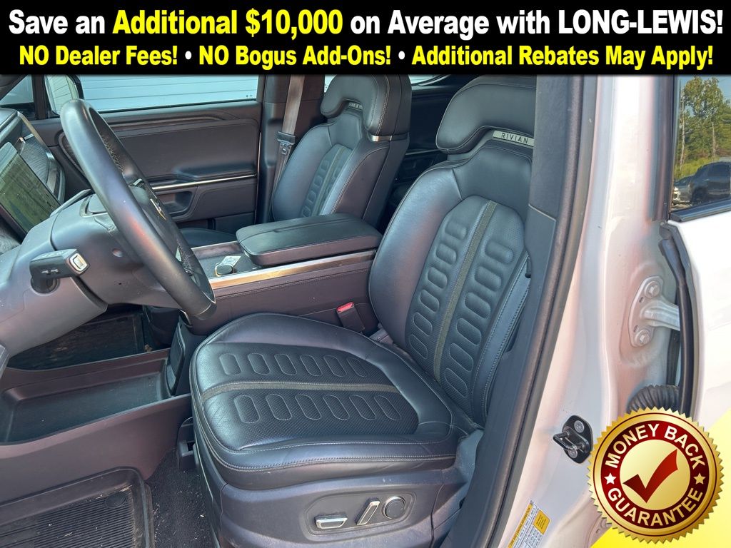 Priced below KBB Fair Purchase Price! 19 Speakers, 4-Wheel Disc Brakes, ABS brakes, Adaptive suspension, Air Conditioning, Alloy wheels, Audio memory, Auto High-beam Headlights, Auto tilt-away steering wheel, Auto-dimming door mirrors, Auto-dimming Rear-View mirror, Auto-leveling suspension, Automatic temperature control, Brake assist, Delay-off headlights, Driver door bin, Driver vanity mirror, Dual front impact airbags, Dual front side impact airbags, Electronic Stability Control, Emergency communication system, Exterior Parking Camera Rear, Four wheel independent suspension, Front anti-roll bar, Front Bucket Seats, Front Center Armrest, Front dual zone A/C, Front fog lights, Front reading lights, Fully automatic headlights, Genuine wood console insert, Genuine wood dashboard insert, Genuine wood door panel insert, Heated & Ventilated Front Bucket Seats, Heated door mirrors, Heated front seats, Heated steering wheel, Illuminated entry, Knee airbag, Low tire pressure warning, Memory seat, Navigation System, Occupant sensing airbag, Outside temperature display, Overhead airbag, Panic alarm, Passenger door bin, Passenger vanity mirror, Perf Vegan Leather Seat Trim w/Patterned Stitching, Power door mirrors, Power driver seat, Power passenger seat, Power steering, Power windows, Radio: Rivian Elevation Audio by Meridian, Rain sensing wipers, Rear air conditioning, Rear anti-roll bar, Rear audio controls, Rear dual zone A/C, Rear fog lights, Rear reading lights, Rear seat center armrest, Rear window defroster, Remote keyless entry, Security system, Speed control, Speed-sensing steering, Split folding rear seat, Spoiler, Steering wheel memory, Steering wheel mounted audio controls, Telescoping steering wheel, Tilt steering wheel, Traction control, Trip computer, Turn signal indicator mirrors, Variably intermittent wipers, Ventilated front seats, Wheels: 21" Road Machined Aluminum.
