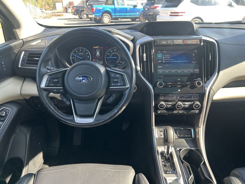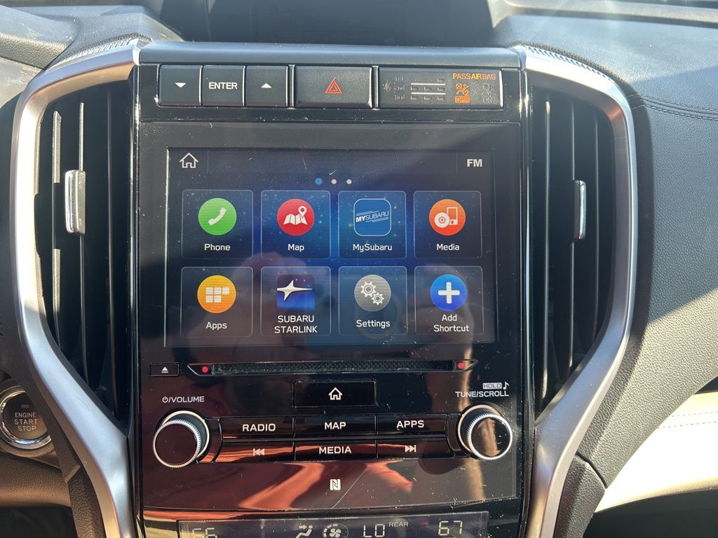 3rd row seats: bench, 3rd Row Sunshade, 4-Wheel Disc Brakes, 6 Speakers, ABS brakes, Aero Crossbar Set, Air Conditioning, All-Weather Floor Liners, Alloy wheels, AM/FM radio: SiriusXM, Auto High-beam Headlights, Auto-Dimming Exterior Mirror w/Approach Light, Auto-dimming Rear-View mirror, Automatic temperature control, Axle Ratio: 4.44, Brake assist, Bumpers: body-color, Cargo Area Cover, Cargo Tray, CD player, Compass, Cup Holder Insert, Delay-off headlights, Driver door bin, Driver vanity mirror, Dual front impact airbags, Dual front side impact airbags, Dual Glass Panoramic Power Moonroof, Electronic Stability Control, Emergency communication system: STARLINK Safety and Security (Subscription Required), Exterior Parking Camera Rear, Four wheel independent suspension, Front anti-roll bar, Front Bucket Seats, Front Center Armrest, Front dual zone A/C, Front fog lights, Front reading lights, Fully automatic headlights, Garage door transmitter: HomeLink, Heated door mirrors, Heated Front Bucket Seats, Heated front seats, Heated rear seats, Heated steering wheel, Illuminated entry, Knee airbag, Low tire pressure warning, Memory seat, Occupant sensing airbag, Outside temperature display, Overhead airbag, Overhead console, Panic alarm, Passenger door bin, Passenger vanity mirror, Perforated Leather-Trimmed Upholstery, Power door mirrors, Power driver seat, Power Liftgate, Power passenger seat, Power steering, Power windows, Radio data system, Radio: Subaru STARLINK 8.0" Multimedia Nav System, Radio: Subaru STARLINK 8.0" Multimedia Plus System, Rear air conditioning, Rear anti-roll bar, Rear Bumper Cover, Rear reading lights, Rear window defroster, Rear window wiper, Reclining 3rd row seat, Remote keyless entry, Security system, Speed control, Splash Guards, Split folding rear seat, Spoiler, STARLINK/Apple CarPlay/Android Auto, Steering wheel mounted audio controls, Tachometer, Technology Package, Telescoping steering wheel, Tilt steering wheel, Traction control, Trip computer, Turn signal indicator mirrors, Variably intermittent wipers, Wheels: 20" x 7.5 J Dk Gray Alloy w/Machine Finish, Windshield Sunshade.