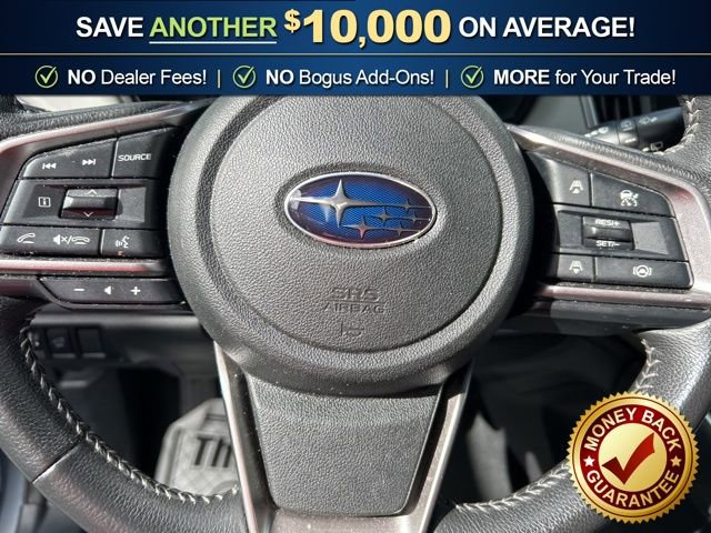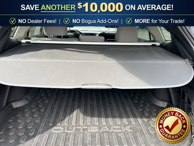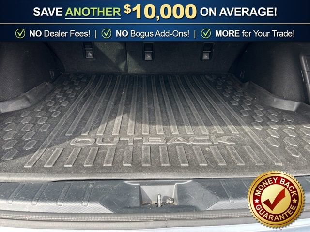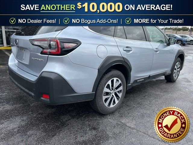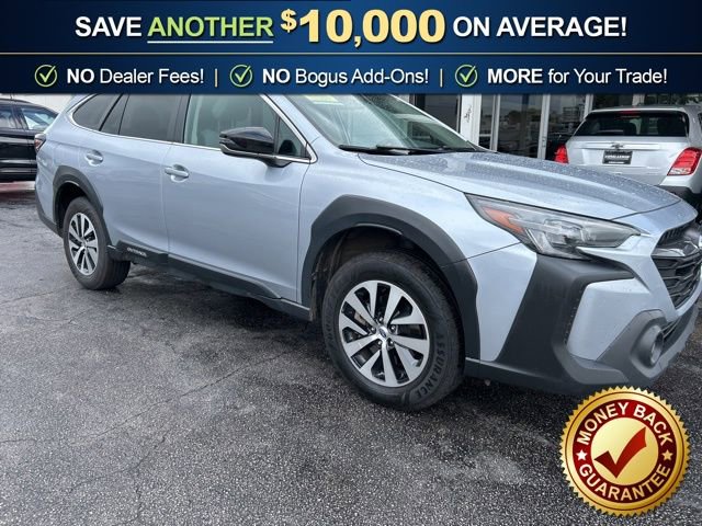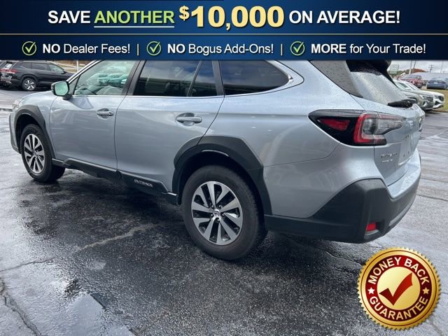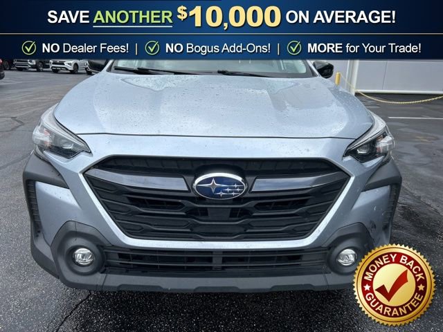 3.90 Axle Ratio, 4-Wheel Disc Brakes, 6 Speakers, ABS brakes, Air Conditioning, Alloy wheels, AM/FM radio: SiriusXM, Auto High-beam Headlights, Automatic temperature control, Blind Spot Detection (BSD), Brake assist, BSD & RCTA & Keyless Access & Push Button Start, Bumpers: body-color, Cloth Upholstery, Driver door bin, Driver vanity mirror, Dual front impact airbags, Dual front side impact airbags, Electronic Stability Control, Emergency communication system: STARLINK Safety Plus (3-year free trial), Exterior Parking Camera Rear, Four wheel independent suspension, Front anti-roll bar, Front Bucket Seats, Front Center Armrest w/Storage, Front dual zone A/C, Front fog lights, Front reading lights, Fully automatic headlights, Hands-Free Power Rear Gate, Heated door mirrors, Heated Front Bucket Seats, Heated front seats, Illuminated entry, Keyless Access w/Push Button Start, Knee airbag, Leather Shift Knob, Leather steering wheel, Low tire pressure warning, Occupant sensing airbag, Outside temperature display, Overhead airbag, Overhead console, Panic alarm, Passenger door bin, Passenger vanity mirror, Power door mirrors, Power driver seat, Power Moonroof, Power steering, Power windows, Radio: Subaru STARLINK 11.6 Multimedia Nav System, Radio: Subaru STARLINK 11.6 Multimedia Plus Sys, Rear anti-roll bar, Rear Cross Traffic Alert (RCTA), Rear seat center armrest, Rear window defroster, Rear window wiper, Remote keyless entry, Roof rack, Security system, Speed control, Speed-sensing steering, Split folding rear seat, Spoiler, Steering wheel mounted audio controls, Steering Wheel Paddle Shift Control Switches, Tachometer, Telescoping steering wheel, Tilt steering wheel, Traction control, Trip computer, Turn signal indicator mirrors, Variably intermittent wipers, Wheels: 17 x 7J Black Aluminum Alloy.2023 Subaru Outback Premium AWD CVT Lineartronic 2.5L 4-Cylinder DOHC 16V Ice Silver Metallic26/32 City/Highway MPG