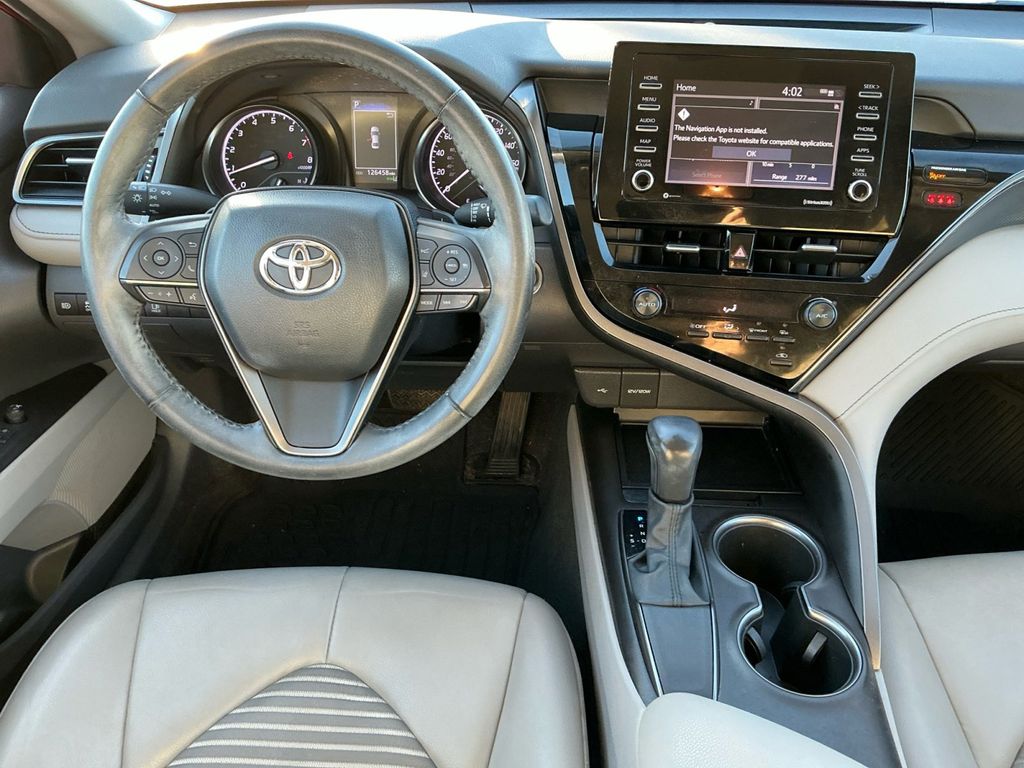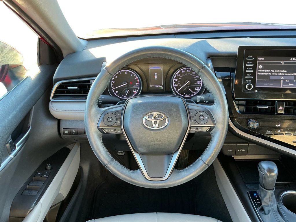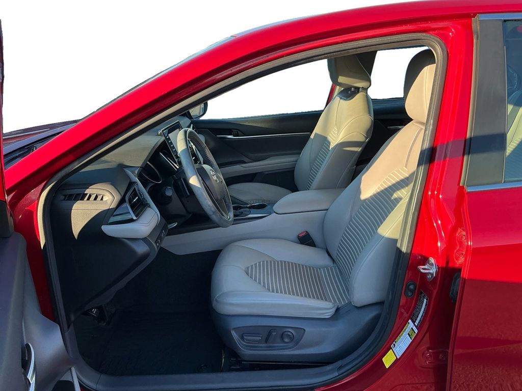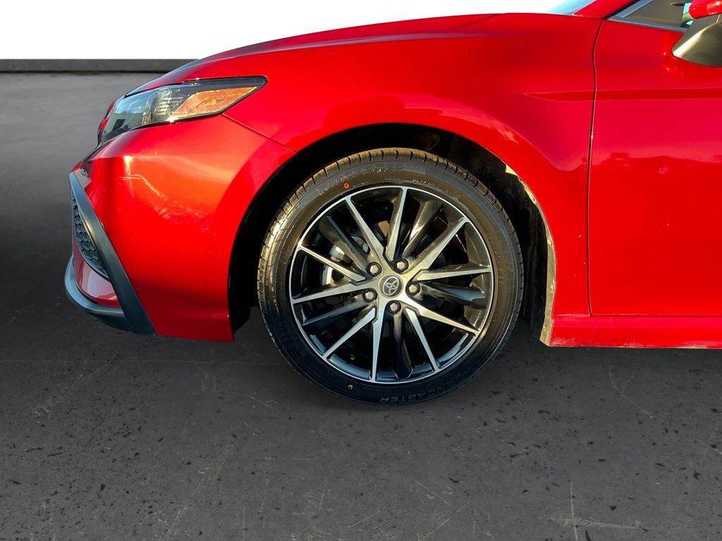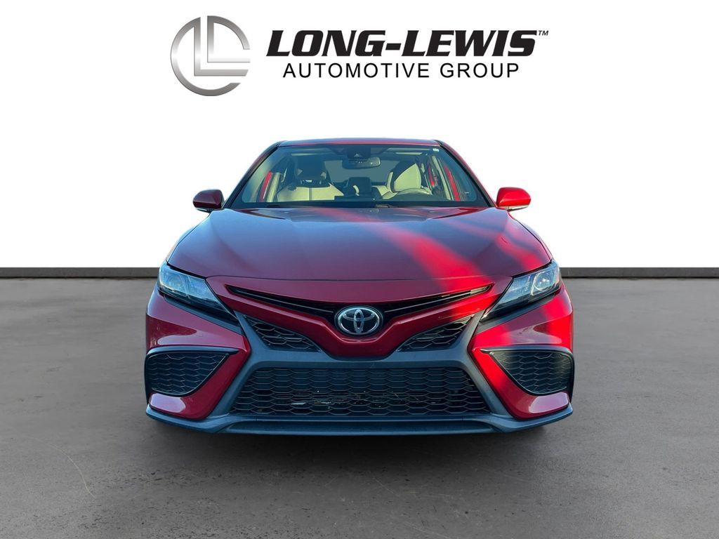 2021 Toyota Camry Red FWD 8-Speed Automatic 2.5L I4 DOHC 16V Cloth, 4-Wheel Disc Brakes, 6 Speakers, ABS brakes, Air Conditioning, Alloy wheels, AM/FM radio: SiriusXM, Apple CarPlay/Android Auto, Auto High-beam Headlights, Automatic temperature control, Brake assist, Bumpers: body-color, Delay-off headlights, Driver door bin, Driver vanity mirror, Dual front impact airbags, Dual front side impact airbags, Electronic Stability Control, Emergency communication system: Safety Connect with 1-year trial, Exterior Parking Camera Rear, Fabric Seat Trim w/Sport SofTex, Four wheel independent suspension, Front anti-roll bar, Front Bucket Seats, Front Center Armrest, Front reading lights, Fully automatic headlights, Illuminated entry, Knee airbag, Low tire pressure warning, Occupant sensing airbag, Outside temperature display, Overhead airbag, Overhead console, Panic alarm, Passenger door bin, Passenger vanity mirror, Power door mirrors, Power driver seat, Power steering, Power windows, Radio data system, Radio: AM/FM Audio System, Rear anti-roll bar, Rear seat center armrest, Rear side impact airbag, Rear window defroster, Remote keyless entry, Security system, Speed control, Speed-sensing steering, Split folding rear seat, Spoiler, Steering wheel mounted audio controls, Tachometer, Telescoping steering wheel, Tilt steering wheel, Traction control, Trip computer, Variably intermittent wipers, Cloth.