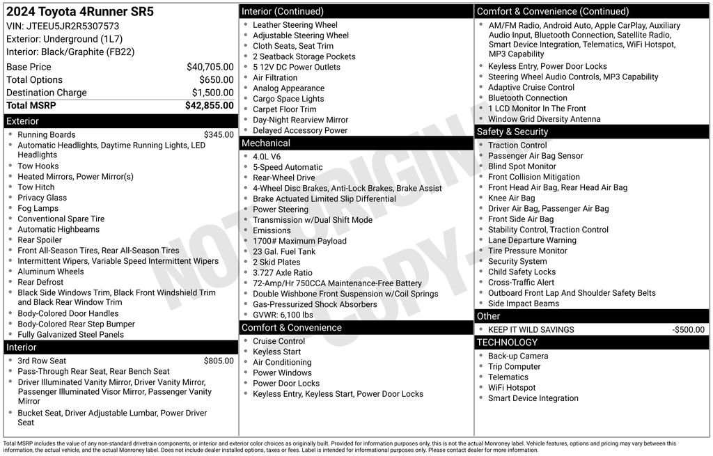 fees or destination charges. Simply add the applicable sales tax and a