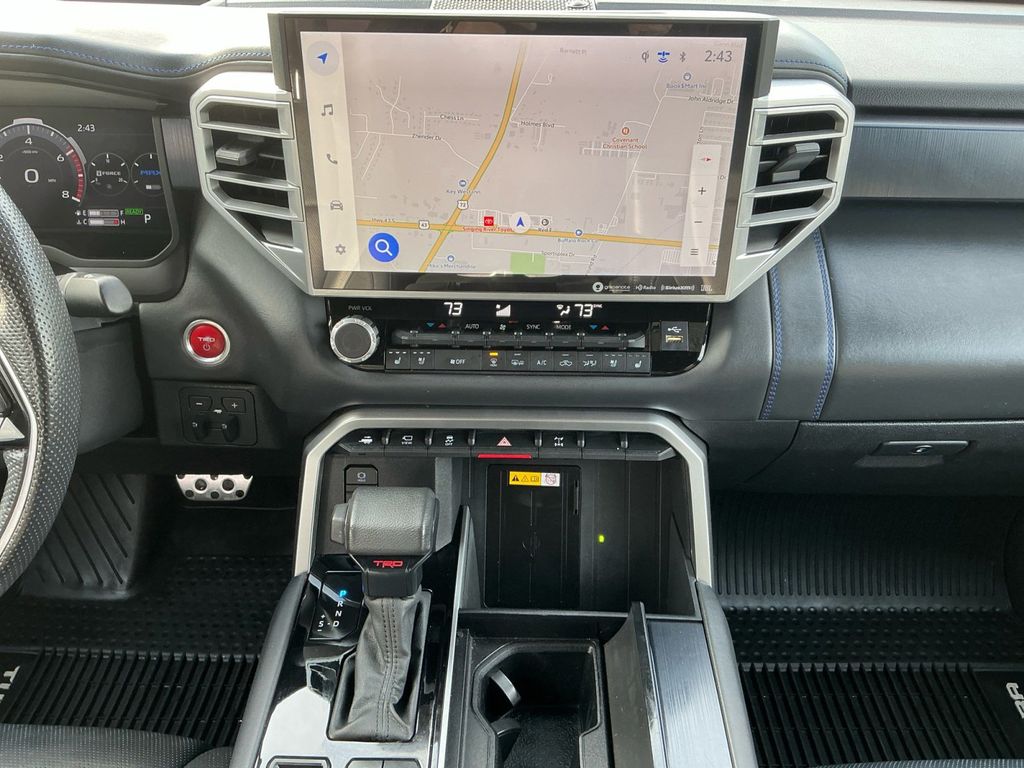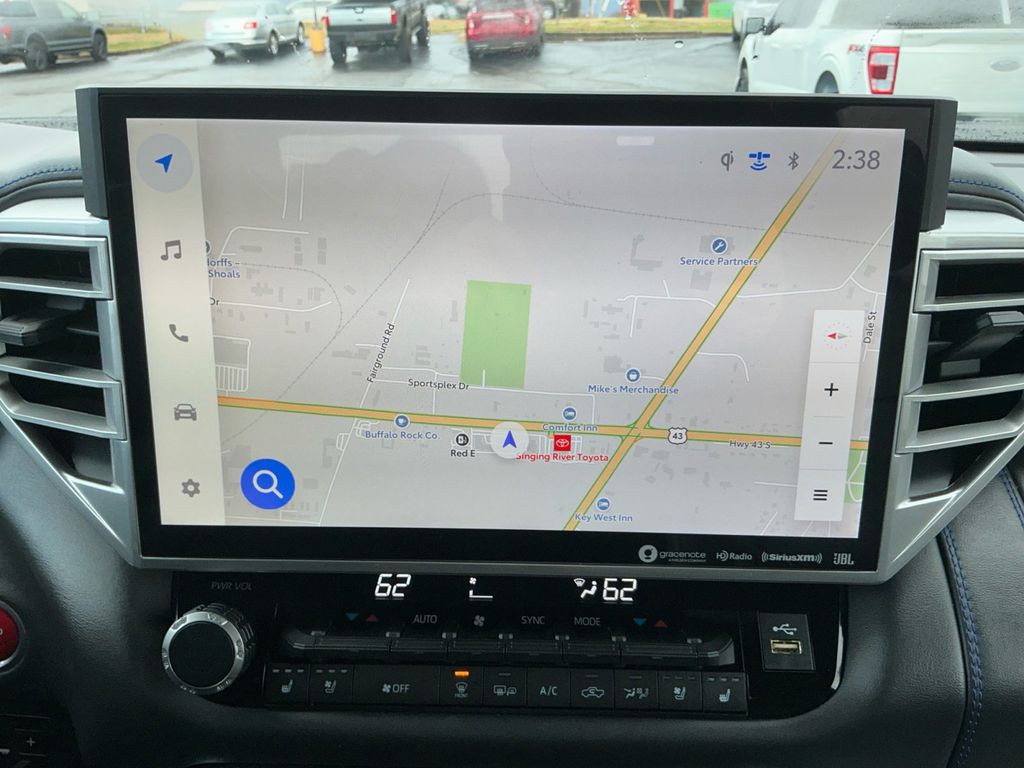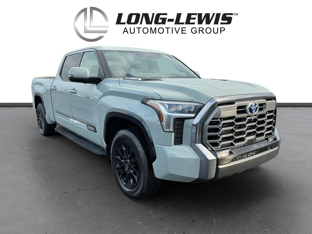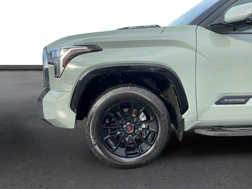2024 Toyota Tundra Hybrid Green 4WD 10-Speed Automatic 3.4L V6 3.4L V6, 3.31 Axle Ratio, 4-Wheel Disc Brakes, ABS brakes, Air Conditioning, Alloy wheels, AM/FM radio: SiriusXM, Apple CarPlay/Android Auto, Auto High-beam Headlights, Auto-dimming door mirrors, Auto-dimming Rear-View mirror, Automatic temperature control, Brake assist, Bumpers: body-color, Delay-off headlights, Driver door bin, Driver vanity mirror, Dual front impact airbags, Dual front side impact airbags, Electronic Stability Control, Emergency communication system: Safety Connect (10-year trial), Exterior Parking Camera Rear, Front anti-roll bar, Front Bucket Seats, Front Center Armrest, Front dual zone A/C, Front fog lights, Front reading lights, Front wheel independent suspension, Fully automatic headlights, Garage door transmitter: HomeLink, Heated & Ventilated Front Bucket Seats, Heated door mirrors, Heated front seats, Heated steering wheel, Illuminated entry, Knee airbag, Leather Shift Knob, Low tire pressure warning, Memory seat, Navigation System, Occupant sensing airbag, Outside temperature display, Overhead airbag, Overhead console, Panic alarm, Passenger door bin, Passenger vanity mirror, Power door mirrors, Power driver seat, Power passenger seat, Power steering, Power windows, Radio data system, Radio: Premium Audio w/JBL, Rear reading lights, Rear seat center armrest, Rear step bumper, Rear window defroster, Remote keyless entry, Security system, Speed control, Speed-sensing steering, Split folding rear seat, Steering wheel mounted audio controls, Tachometer, Telescoping steering wheel, Tilt steering wheel, Traction control, Trip computer, Turn signal indicator mirrors, Variably intermittent wipers, Ventilated front seats, Voltmeter, 3.4L V6.
