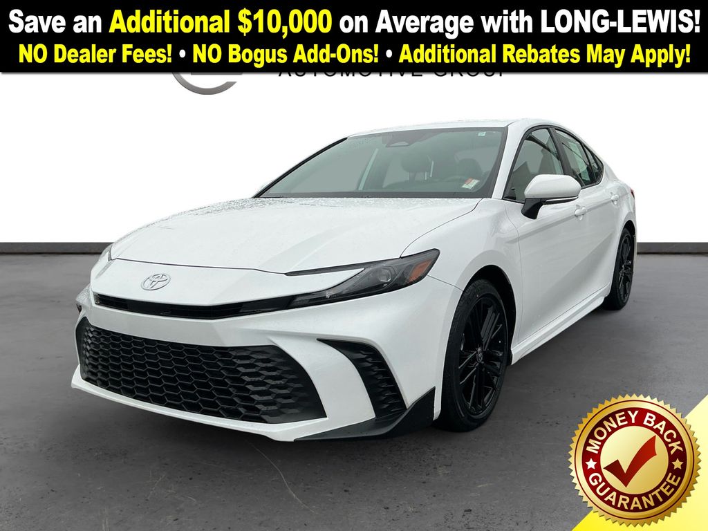2025 Toyota Camry White FWD eCVT 2.5L 4-Cylinder 16V DOHC 2.5L 4-Cylinder 16V DOHC, 4-Wheel Disc Brakes, 6 Speakers, ABS brakes, Air Conditioning, Alloy wheels, AM/FM radio: SiriusXM, Apple CarPlay/Android Auto, Auto High-beam Headlights, Automatic temperature control, Brake assist, Bumpers: body-color, Delay-off headlights, Driver door bin, Driver vanity mirror, Dual front impact airbags, Dual front side impact airbags, Electronic Stability Control, Emergency communication system: Safety Connect (up to 10-year trial subscription), Exterior Parking Camera Rear, Four wheel independent suspension, Front anti-roll bar, Front Bucket Seats, Front Center Armrest, Front dual zone A/C, Front reading lights, Fully automatic headlights, Heated door mirrors, Illuminated entry, Knee airbag, Low tire pressure warning, Occupant sensing airbag, Outside temperature display, Overhead airbag, Overhead console, Panic alarm, Passenger door bin, Passenger vanity mirror, Power door mirrors, Power steering, Power windows, Radio data system, Rear anti-roll bar, Rear seat center armrest, Rear side impact airbag, Rear window defroster, Remote keyless entry, Security system, Speed control, Speed-sensing steering, Split folding rear seat, Steering wheel mounted audio controls, Telescoping steering wheel, Tilt steering wheel, Traction control, Trip computer, Turn signal indicator mirrors, Variably intermittent wipers, 2.5L 4-Cylinder 16V DOHC.