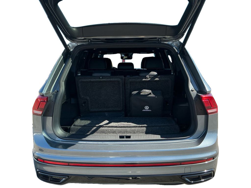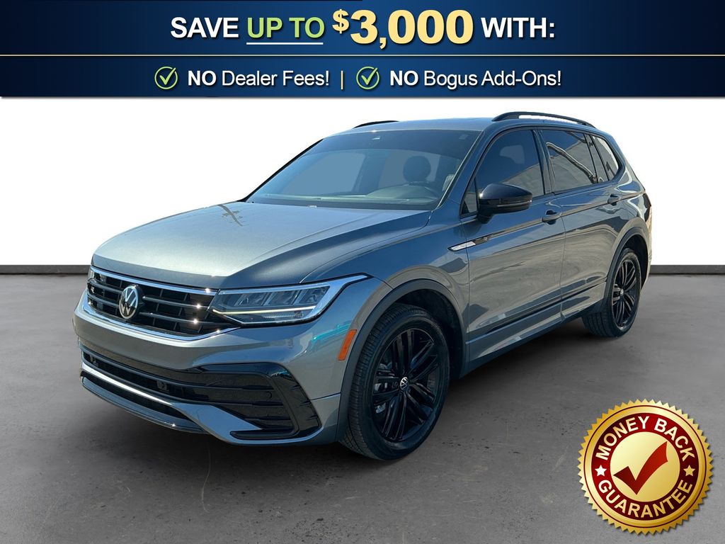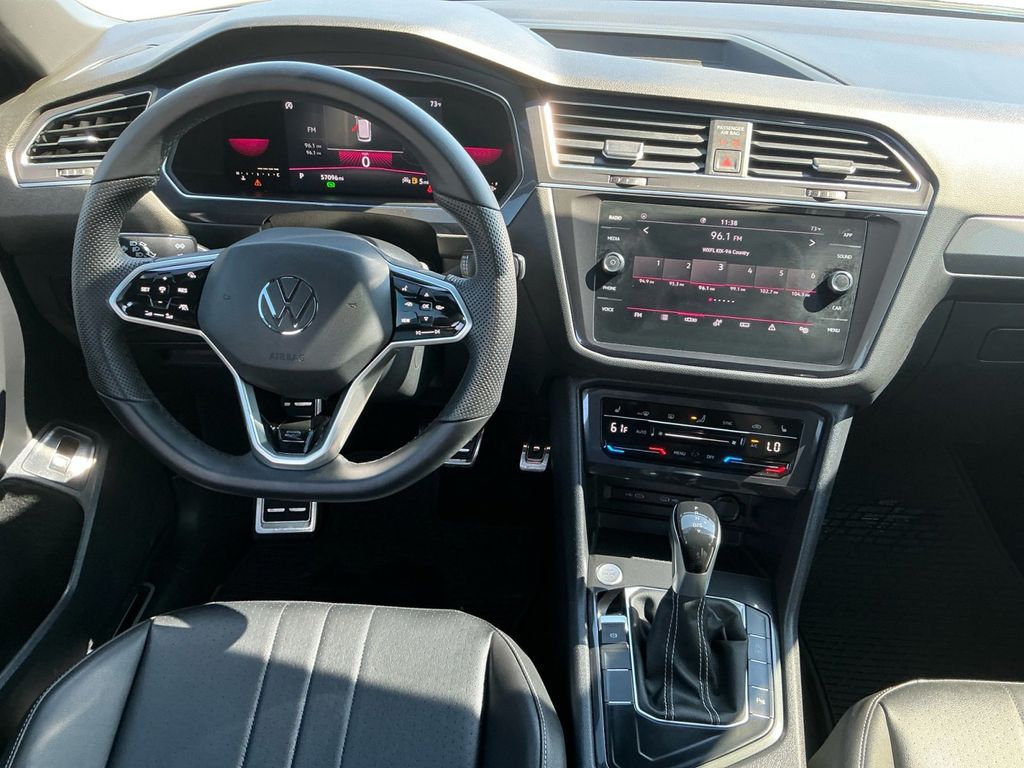 2022 Volkswagen Tiguan 2.0T SE R-Line Black Platinum Gray Metallic 2.0T SE R-Line Black FWD 8-Speed Automatic with Tiptronic 2.0L TSI DOHC 3.33 Axle Ratio, 3rd row seats: bench, 4-Wheel Disc Brakes, 4-Wheel Independent Suspension, 6 Speakers, ABS brakes, Air Conditioning, Alloy wheels, AM/FM radio: SiriusXM with 360L, Auto-dimming Rear-View mirror, Automatic temperature control, Brake assist, Bumpers: body-color, Compass, Delay-off headlights, Driver door bin, Driver vanity mirror, Dual front impact airbags, Dual front side impact airbags, Electronic Stability Control, Emergency communication system: Car-Net, Exterior Parking Camera Rear, Four wheel independent suspension, Front anti-roll bar, Front Bucket Seats, Front Center Armrest, Front dual zone A/C, Front reading lights, Fully automatic headlights, Heated door mirrors, Heated Front Comfort Seats, Heated front seats, Illuminated entry, Leather Shift Knob, Leather steering wheel, Low tire pressure warning, Occupant sensing airbag, Outside temperature display, Overhead airbag, Overhead console, Panic alarm, Passenger door bin, Passenger vanity mirror, Perforated V-Tex Leatherette Seating Surfaces, Power door mirrors, Power driver seat, Power Liftgate, Power moonroof, Power steering, Power windows, Radio data system, Radio: MIB3 Composition Media AM/FM/HD, Rain sensing wipers, Rear anti-roll bar, Rear reading lights, Rear seat center armrest, Rear window defroster, Rear window wiper, Remote keyless entry, Roof rack: rails only, Security system, Speed control, Speed-sensing steering, Split folding rear seat, Spoiler, Sport steering wheel, Steering wheel mounted audio controls, Tachometer, Telescoping steering wheel, Tilt steering wheel, Traction control, Trip computer, Turn signal indicator mirrors, Variably intermittent wipers, Wheels: 19" Black Twin 5-Spoke Alloy.