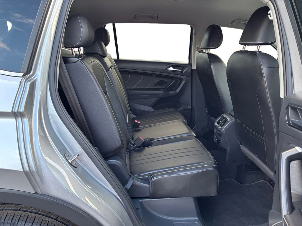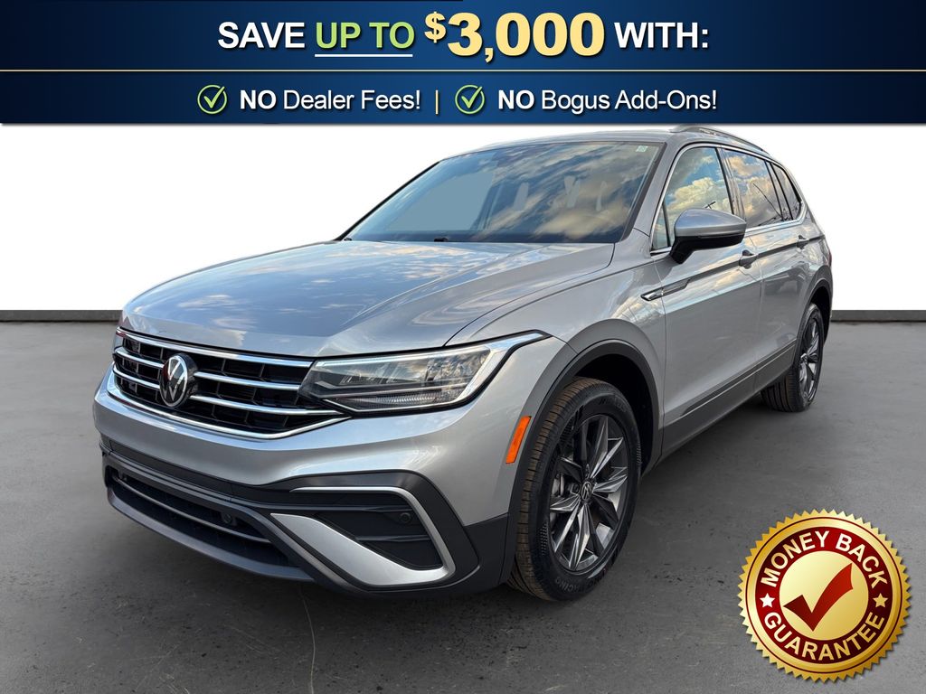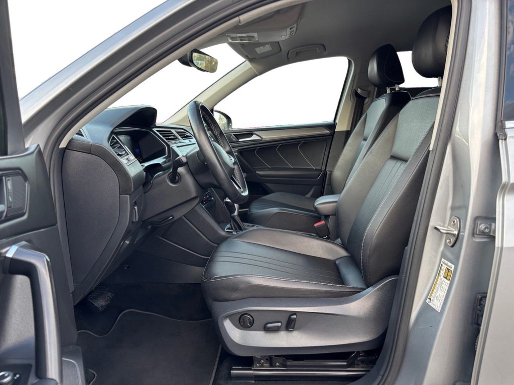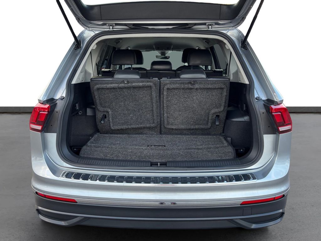 2023 Volkswagen Tiguan 2.0T SE Pyrite Silver Metallic 2.0T SE FWD 8-Speed Automatic with Tiptronic 2.0L TSI DOHC 3-Row Rubber Monster Mats w/Logo Kit (Set of 5), 3.33 Axle Ratio, 3rd row seats: bench, 4-Wheel Disc Brakes, 4-Wheel Independent Suspension, 6 Speakers, ABS brakes, Air Conditioning, Alloy wheels, AM/FM radio: SiriusXM with 360L, Auto-dimming Rear-View mirror, Auto-Dimming Rearview Mirror w/Compass/HomeLink (DISC), Automatic temperature control, Brake assist, Bumperdillo Rear Bumper Chrome Protection Plate, Bumpers: body-color, Cargo Area Retractable Privacy Cover, Compass, Credit - Power Rear Liftgate Removed, Delay-off headlights, Driver door bin, Driver vanity mirror, Dual front impact airbags, Dual front side impact airbags, Electronic Stability Control, Emergency communication system: VW Car-Net Safe & Secure 5-year, Exterior Parking Camera Rear, First Aid Kit, Four wheel independent suspension, Front anti-roll bar, Front Bucket Seats, Front Center Armrest, Front dual zone A/C, Front reading lights, Fully automatic headlights, Heated door mirrors, Heated Front Comfort Seats, Heated front seats, Heavy Duty Trunk Liner w/VW CarGo Blocks, Illuminated entry, Leather Shift Knob, Low tire pressure warning, Occupant sensing airbag, Outside temperature display, Overhead airbag, Overhead console, Panic alarm, Passenger door bin, Passenger vanity mirror, Perforated V-Tex Leatherette Seating Surfaces, Power door mirrors, Power driver seat, Power Liftgate, Power steering, Power windows, Radio data system, Radio: MIB3 Composition Media AM/FM/HD, Rain sensing wipers, Rear anti-roll bar, Rear reading lights, Rear seat center armrest, Rear window defroster, Rear window wiper, Remote keyless entry, Roadside Assistance Kit, Security system, Speed control, Speed-sensing steering, Split folding rear seat, Spoiler, Steering wheel mounted audio controls, Tachometer, Telescoping steering wheel, Tilt steering wheel, Traction control, Trip computer, Turn signal indicator mirrors, Variably intermittent wipers, VW Care, Wheels: 18" Dark Graphite Painted 10-Spoke Alloy.