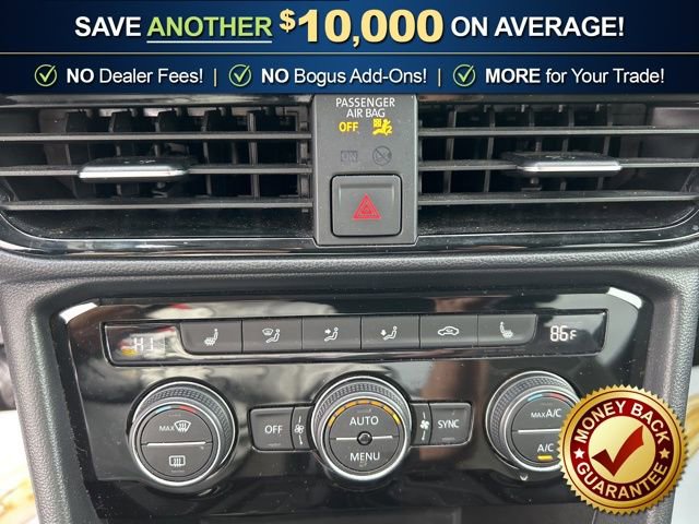 3.23 Axle Ratio, 4-Wheel Disc Brakes, 6 Speakers, ABS brakes, Active Blind Spot Monitor, Air Conditioning, Alloy wheels, AM/FM radio: SiriusXM with 360L, Auto High-beam Headlights, Automatic temperature control, Brake assist, Bumpers: body-color, CloudTex & Cloth Seating Surfaces, Compass, Delay-off headlights, Driver door bin, Driver vanity mirror, Dual front impact airbags, Dual front side impact airbags, Electronic Stability Control, Emergency communication system: VW Car-Net Safe & Secure 5-year, Exterior Parking Camera Rear, Front anti-roll bar, Front Bucket Seats, Front Center Armrest, Front dual zone A/C, Front reading lights, Front Strut Rear Torsion Beam Suspension, Front wheel independent suspension, Fully automatic headlights, Heated door mirrors, Heated Front Bucket Seats, Heated front seats, Heated steering wheel, Illuminated entry, Leather Shift Knob, Low tire pressure warning, Occupant sensing airbag, Outside temperature display, Overhead airbag, Overhead console, Panic alarm, Passenger door bin, Passenger vanity mirror, Power door mirrors, Power driver seat, Power steering, Power windows, Radio data system, Radio: MIB3 Composition Media AM/FM/HD, Rain sensing wipers, Rear anti-roll bar, Rear seat center armrest, Rear window defroster, Rear window wiper, Remote keyless entry, Roof rack: rails only, Security system, Speed control, Speed-sensing steering, Split folding rear seat, Spoiler, Steering wheel mounted audio controls, Tachometer, Telescoping steering wheel, Tilt steering wheel, Traction control, Trip computer, Variably intermittent wipers, Wheels: 18 2-Tone Machined Alloy.