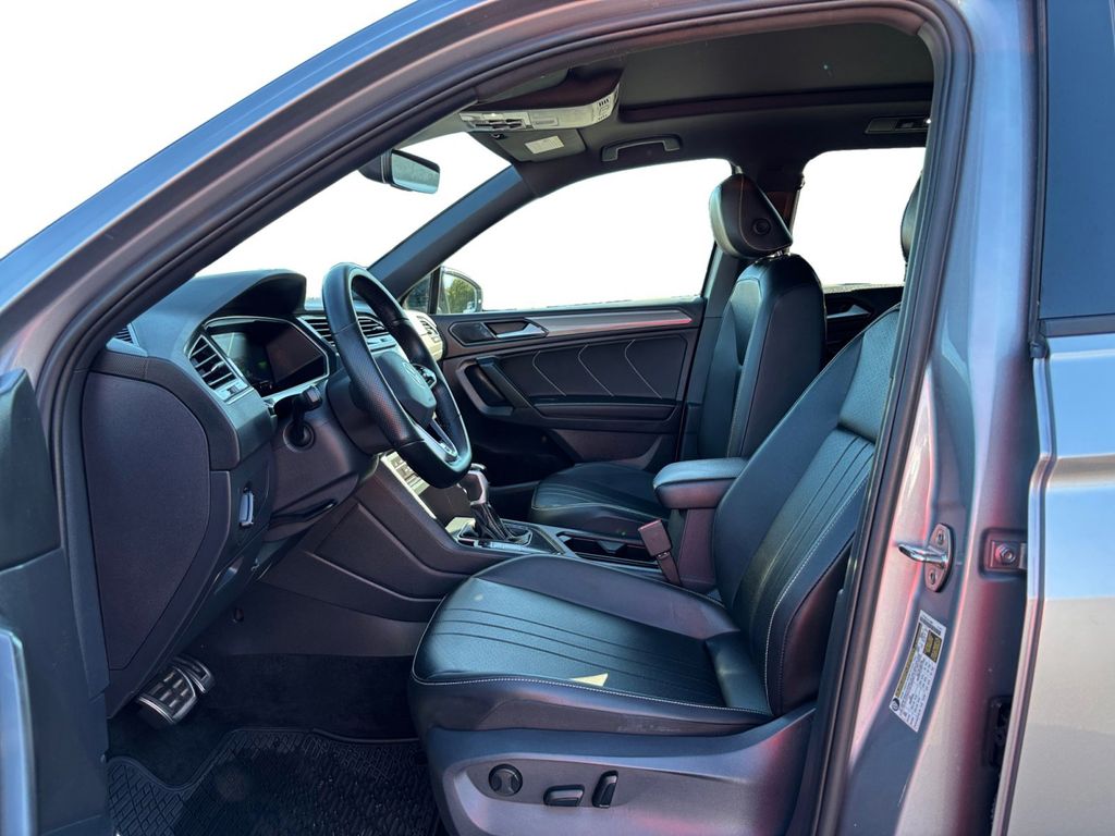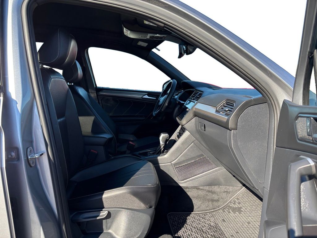 2024 Volkswagen Tiguan 2.0T SE R-Line Black Pyrite Silver Metallic 2.0T SE R-Line Black FWD 8-Speed Automatic with Tiptronic 2.0L TSI DOHC 3-Row Rubber Monster Mats Kit (Set of 5), 3.33 Axle Ratio, 3rd row seats: bench, 4-Wheel Disc Brakes, 4-Wheel Independent Suspension, 6 Speakers, ABS brakes, Air Conditioning, Alloy wheels, AM/FM radio: SiriusXM with 360L, Auto-dimming Rear-View mirror, Auto-Dimming Rearview Mirror w/HomeLink Connect, Automatic temperature control, Brake assist, Bumpers: body-color, Compass, Delay-off headlights, Driver door bin, Driver vanity mirror, Dual front impact airbags, Dual front side impact airbags, Electronic Stability Control, Emergency communication system: VW Car-Net Safe & Secure 5-year, Exterior Parking Camera Rear, First Aid Kit, Four wheel independent suspension, Front anti-roll bar, Front Bucket Seats, Front Center Armrest, Front dual zone A/C, Front reading lights, Fully automatic headlights, Heated door mirrors, Heated Front Seats, Heated front seats, Heavy Duty Trunk Liner w/VW CarGo Blocks, Illuminated entry, Leather Shift Knob, Leather steering wheel, Low tire pressure warning, Occupant sensing airbag, Outside temperature display, Overhead airbag, Overhead console, Panic alarm, Passenger door bin, Passenger vanity mirror, Perforated V-Tex Leatherette Seating Surfaces, Power door mirrors, Power driver seat, Power Liftgate, Power moonroof, Power steering, Power windows, Radio data system, Radio: MIB3 Composition Media AM/FM/HD, Rain sensing wipers, Rear anti-roll bar, Rear reading lights, Rear seat center armrest, Rear window defroster, Rear window wiper, Remote keyless entry, Roadside Assistance Kit, Security system, Speed control, Speed-sensing steering, Split folding rear seat, Spoiler, Sport steering wheel, Steering wheel mounted audio controls, Tachometer, Telescoping steering wheel, Tilt steering wheel, Traction control, Trip computer, Turn signal indicator mirrors, Variably intermittent wipers, VW Care, Wheels: 19" Black Painted Twin 5-Spoke Alloy.